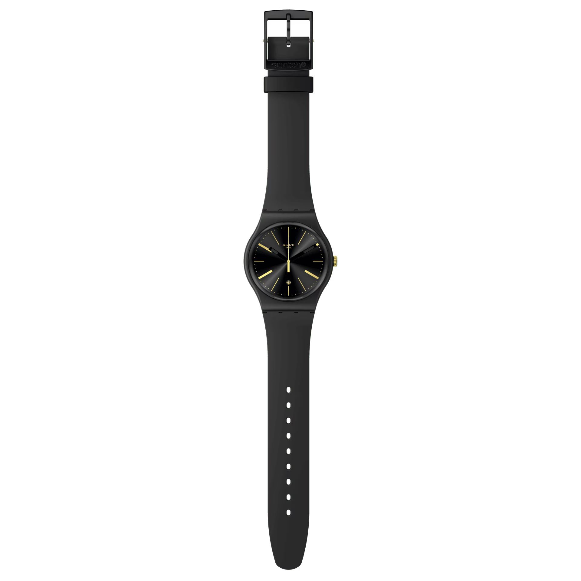 La montre "A Dash of Yellow" se distingue par son cadran noir brossé soleil agrémenté d'index dorés et d'aiguilles des heures et des minutes noires luminescentes. Avec un boîtier et un verre biosourcés, cette montre affiche un style moderne et éco-responsable. Son bracelet biosourcé noir mat, muni d'une boucle et d'un passant assortis, apporte une touche minimaliste qui complète parfaitement son look. Dotée d'un mouvement quartz, étanche jusqu'à 3 bars et munie d'un fermoir en plastique, cette montre combine fonctionnalité et élégance discrète.
