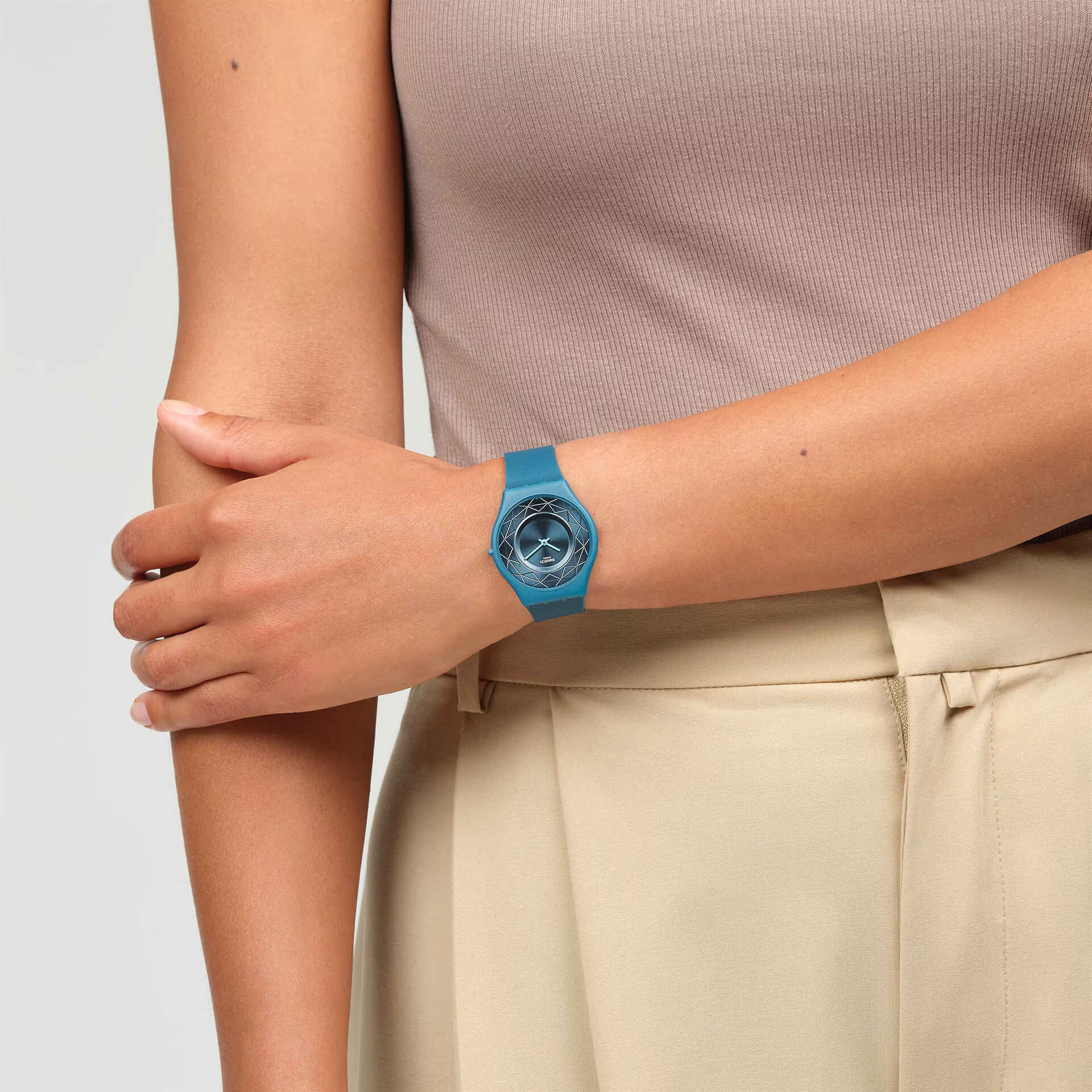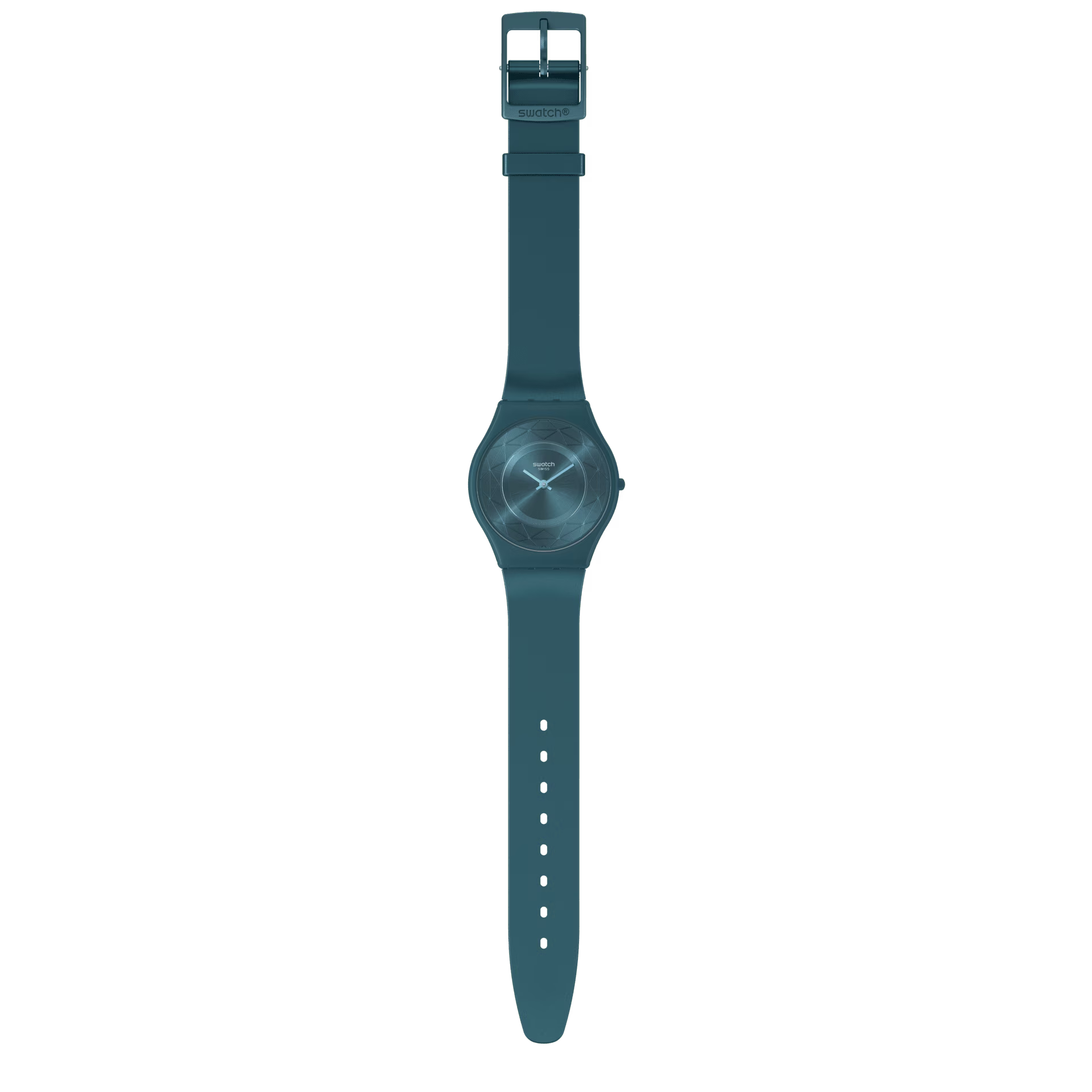 La montre "Auric Whisper" capture l'essence de l'élégance avec sa teinte bleu-vert captivante. Son cadran vert brossé soleil, orné de motifs triangulaires gravés, évoque un style unique. Le boîtier et le verre biosourcés se fondent harmonieusement avec l'effet anodamazing du bracelet vert, créant une esthétique saisissante. Cette montre ultrafine arbore une étanchéité jusqu'à 3 bars, un fermoir en plastique et un bracelet en silicone avec une boucle pour une touche de modernité. Avec son design rond et son alliance audacieuse de couleurs vertes, cette pièce incarne l'union parfaite entre innovation écologique et esthétique contemporaine.