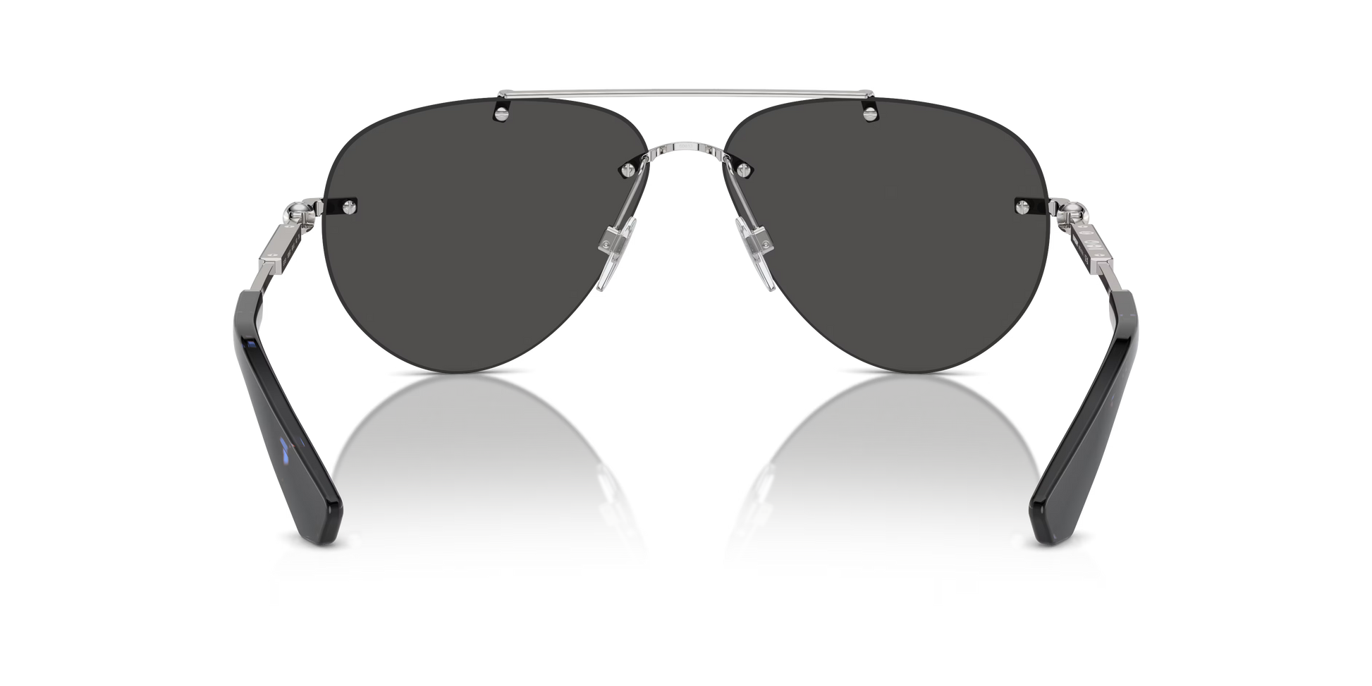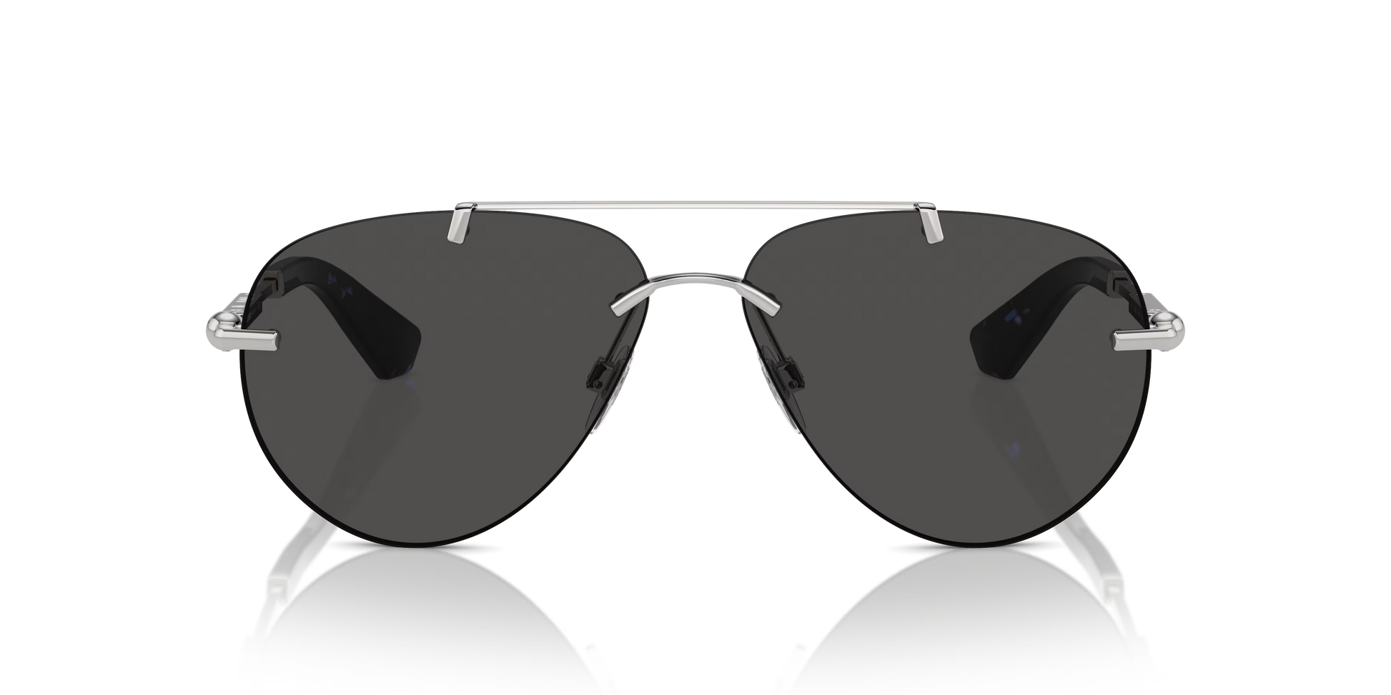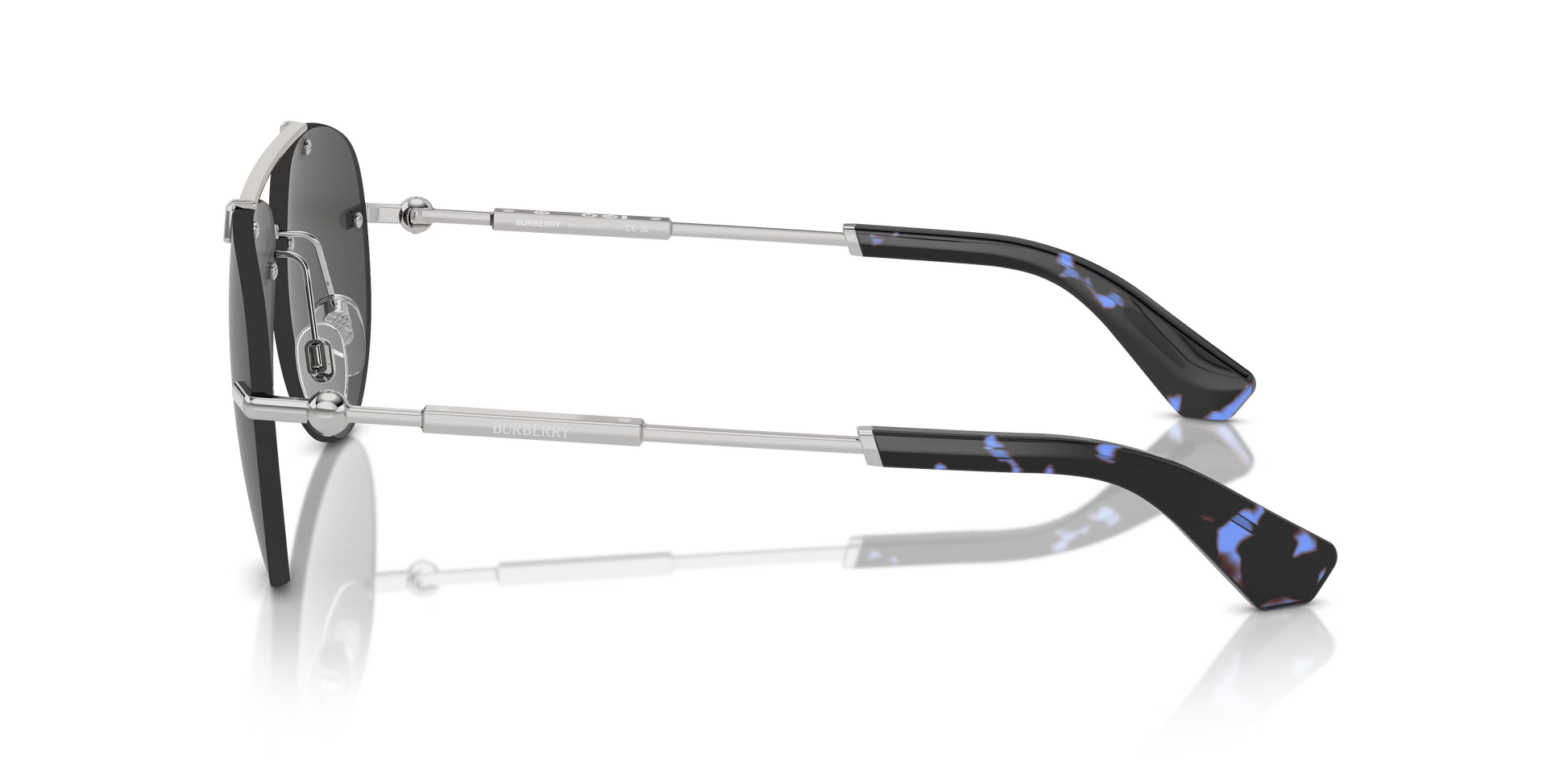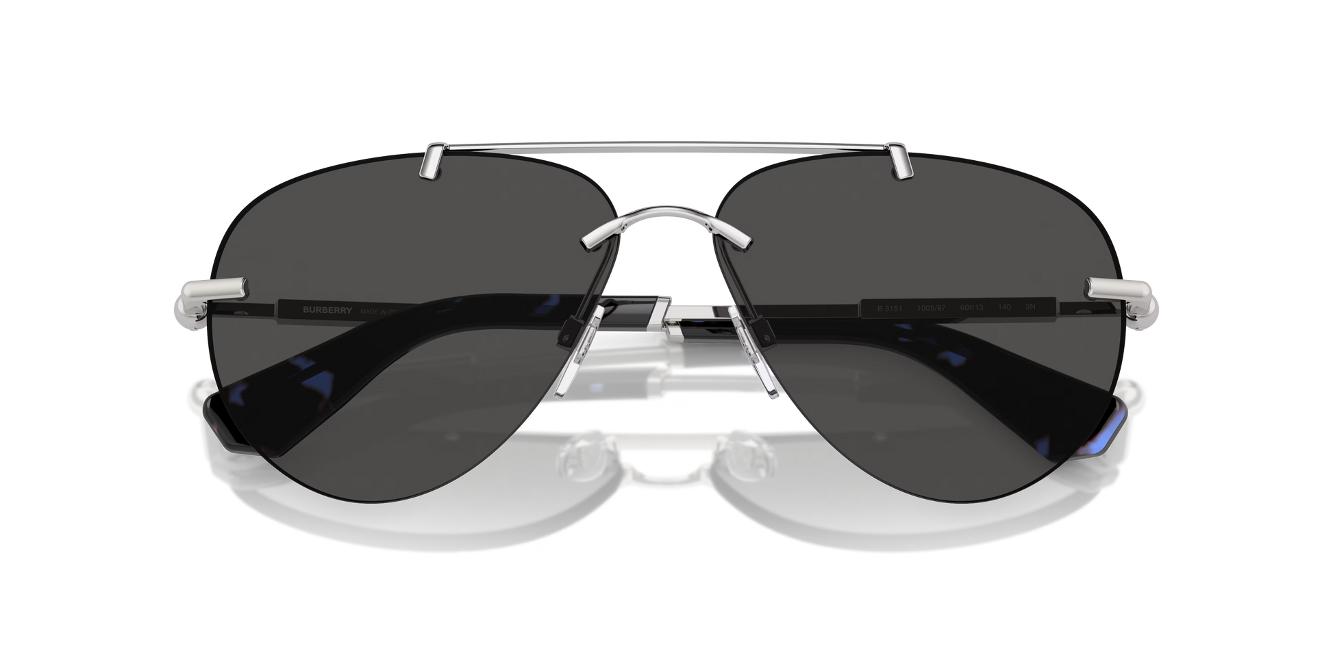 Les lunettes de soleil Burberry BE3151 en forme pilote offrent une élégance intemporelle avec une monture en métal argenté et des verres gris foncé. La finition argentée des montures ajoute un éclat raffiné, tandis que la technologie des verres à teinte unie garantit une protection UV optimale tout en accentuant un style luxueux.