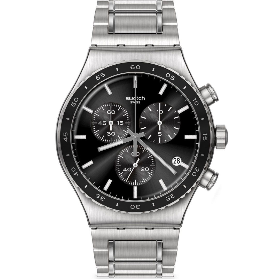 Avec son bracelet réglable et sa boucle papillon, cette montre NEW IRONY CHRONO sophistiquée en acier inoxydable présente un élégant cadran noir et une lunette gravée dans un boîtier en acier inoxydable brossé aux détails polis.