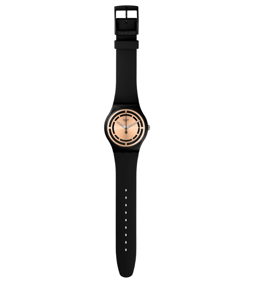 Le bracelet en silicone noir, doux au toucher, est à la fois confortable et fonctionnel. Il est doté d'une boucle simple qui permet un ajustement facile.