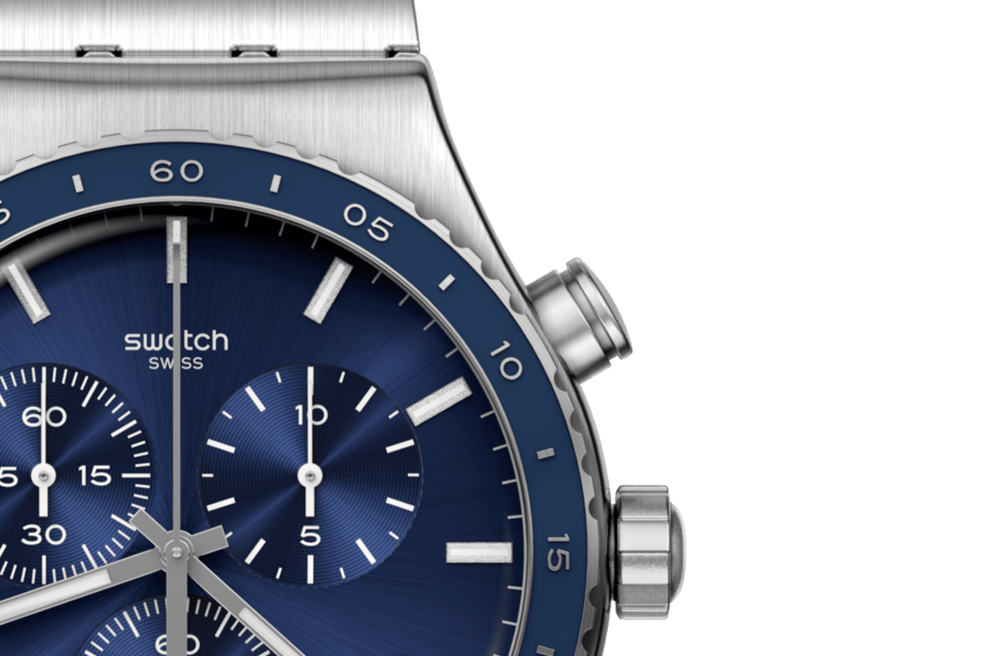 Avec son bracelet réglable et sa boucle papillon, cette montre NEW IRONY CHRONO en acier inoxydable présente un cadran sophistiqué bleu foncé et une lunette gravée dans un boîtier en acier inoxydable brossé aux détails polis.