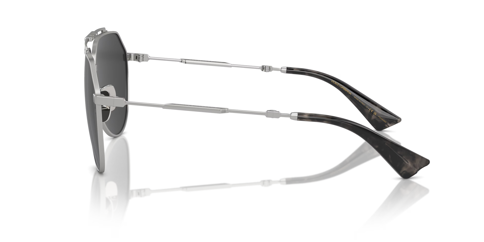 Découvrez les lunettes de soleil Dolce & Gabbana DG2302, une monture pilote en métal avec une finition argent mat, conçue pour les amateurs de style et d'élégance. Ces lunettes présentent des verres noirs polarisés qui offrent une protection optimale contre les rayons UV tout en réduisant l'éblouissement, garantissant ainsi une vision claire et nette.
