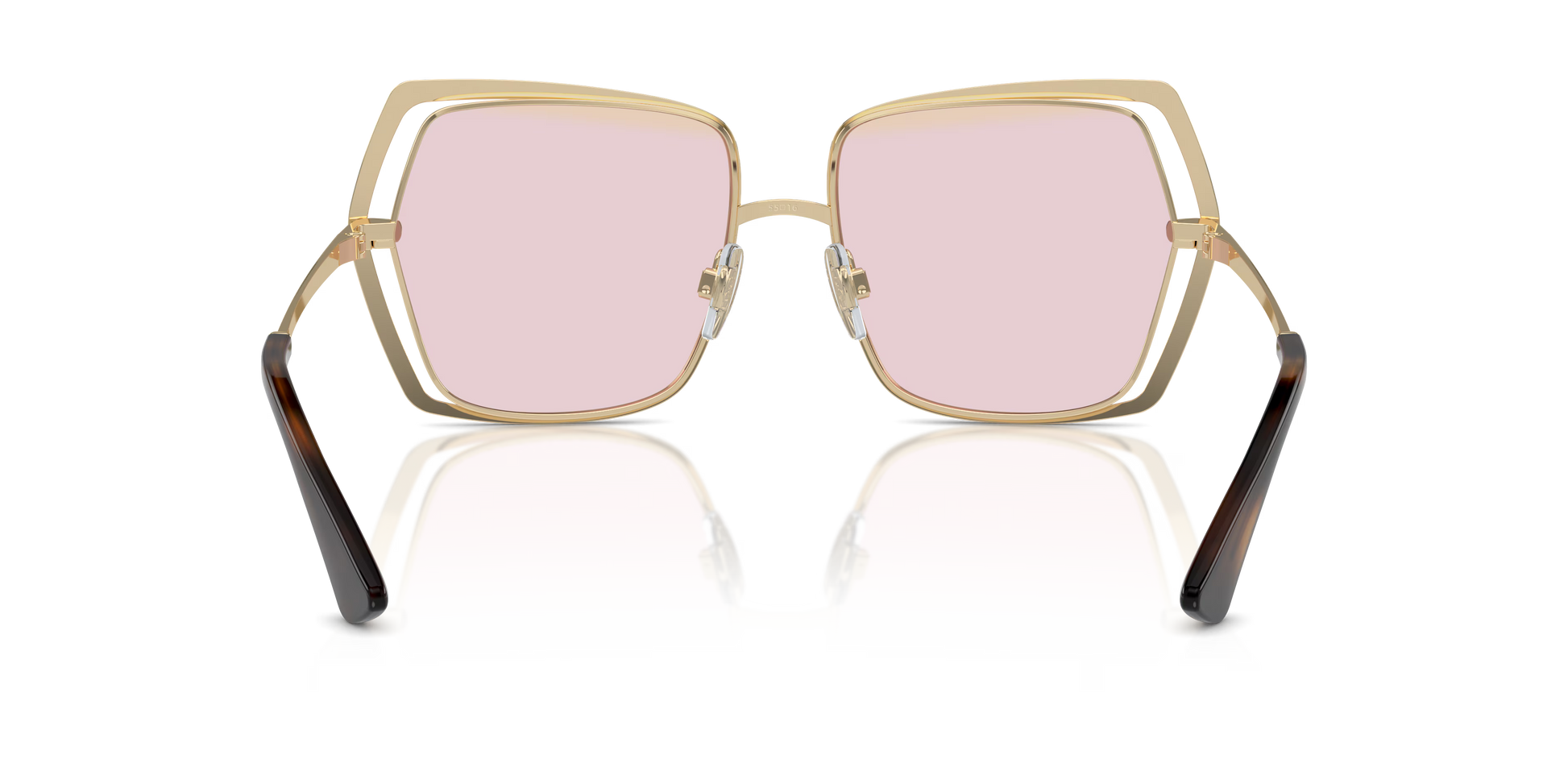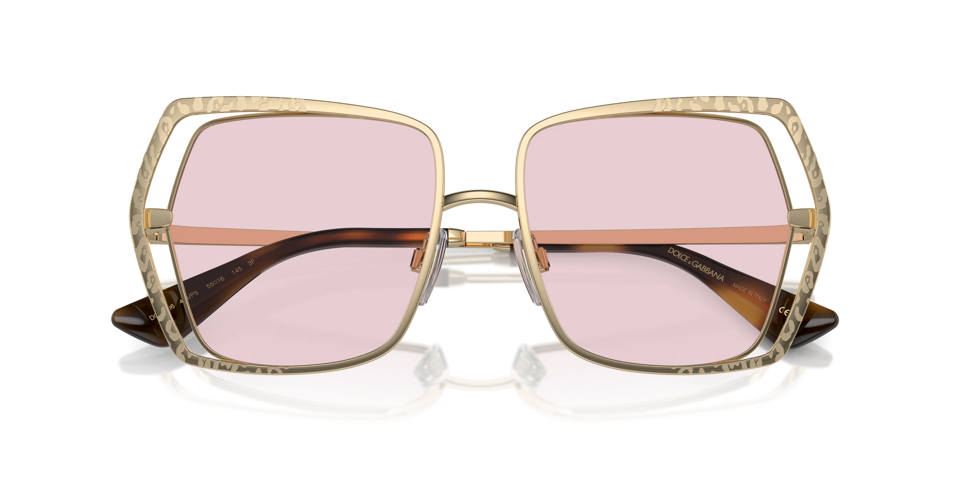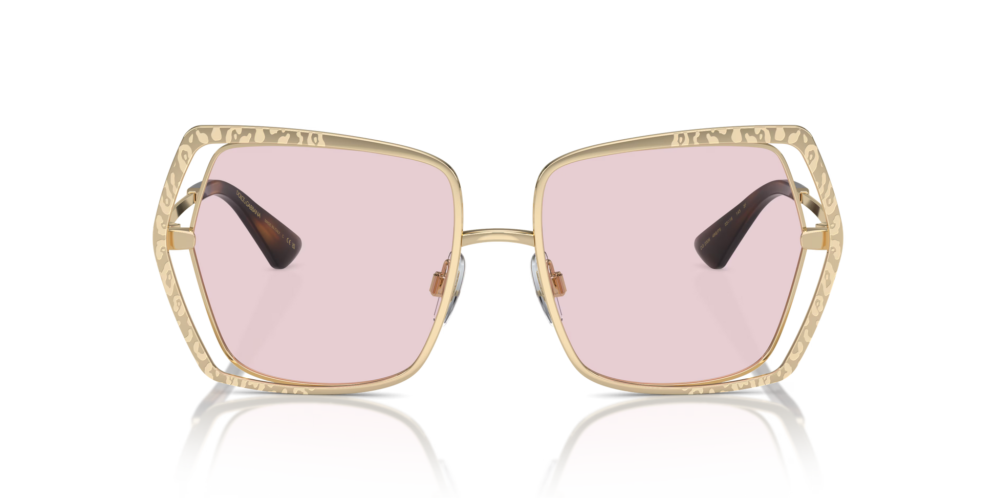 Ajoutez une touche de sophistication à votre look avec les lunettes de soleil Dolce & Gabbana DG2306. Dotées d'une monture papillon en métal de couleur or pâle, ces lunettes incarnent l'élégance intemporelle. Les verres photochromiques qui passent d'un rose à un pourpre dégradé non seulement protègent vos yeux des rayons UV, mais rehaussent aussi votre style avec un éclat raffiné.