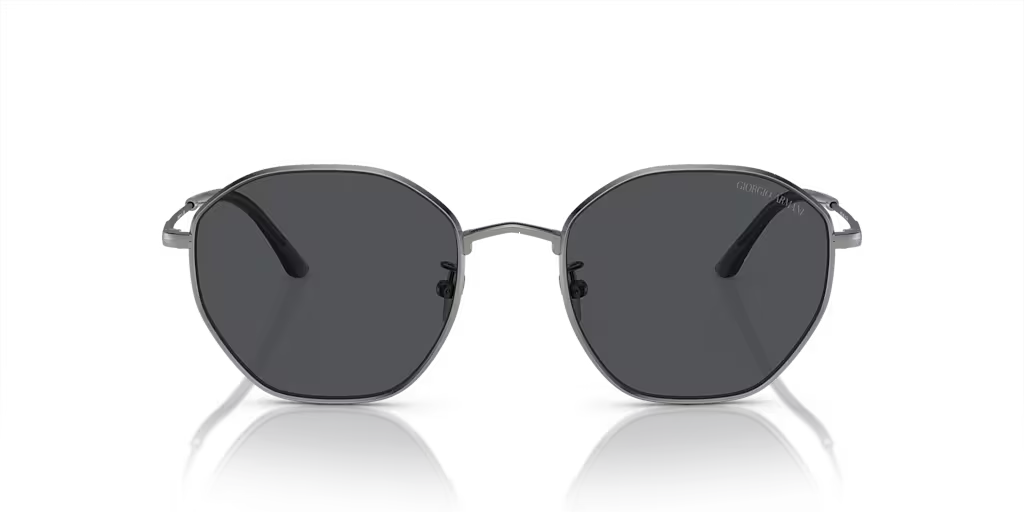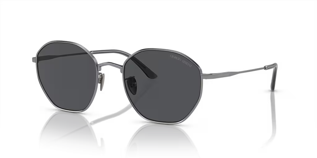 Ces lunettes de soleil Giorgio Armani AR6150 présentent une forme carrée minimaliste avec une touche de sophistication. La combinaison de branches métalliques élégantes et de verres gris foncé en polycarbonate en fait une pièce chic et intemporelle.