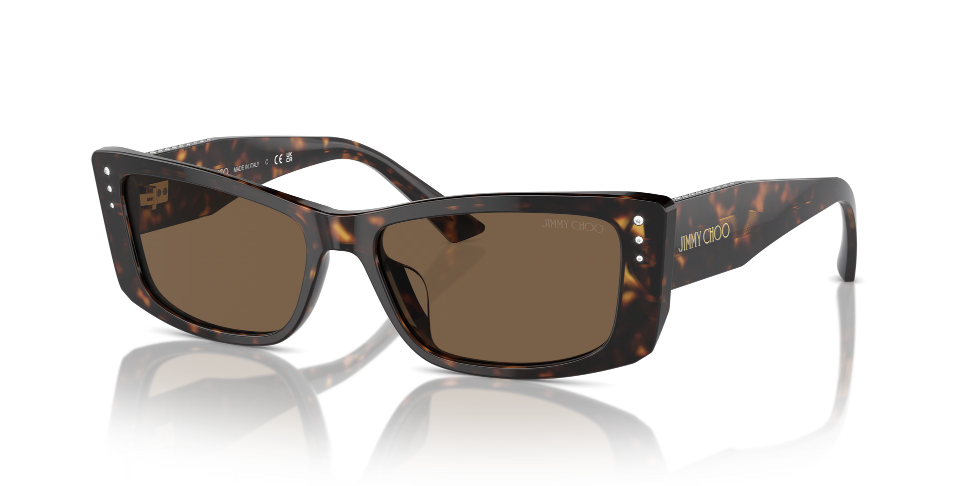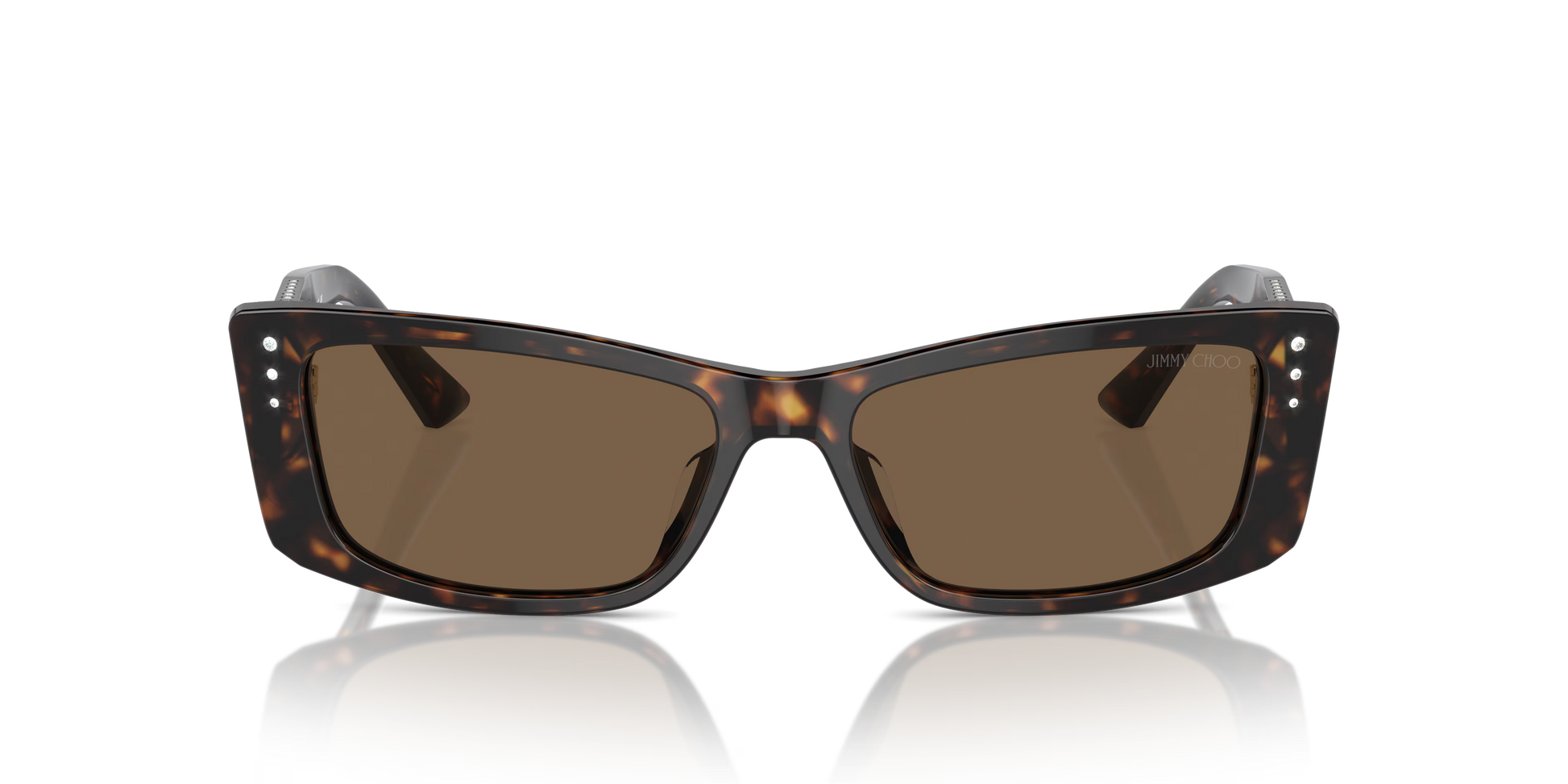 Les lunettes de soleil Jimmy Choo JC5002BU, avec leur forme pillow et leur monture havana ornée de strass, apportent une touche de luxe et de glamour à chaque tenue. Le design sophistiqué et moderne de ces lunettes se marie parfaitement avec les verres marron foncé, offrant à la fois protection solaire et style.