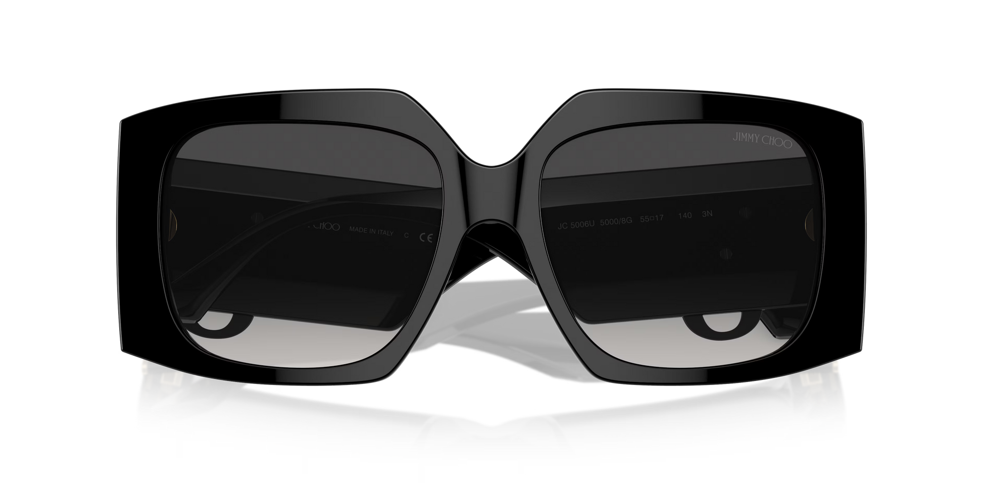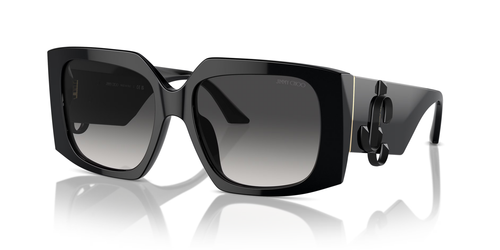 Rehaussez votre style avec les lunettes de soleil Jimmy Choo JC5006U, un mélange parfait de sophistication et d'élégance. Cette monture papillon noire en acétate brillant combine résistance et style, apportant une touche glamour à n'importe quelle tenue. Les verres dégradés gris offrent non seulement une protection solaire optimale, mais ajoutent également une dimension élégante à votre look quotidien.