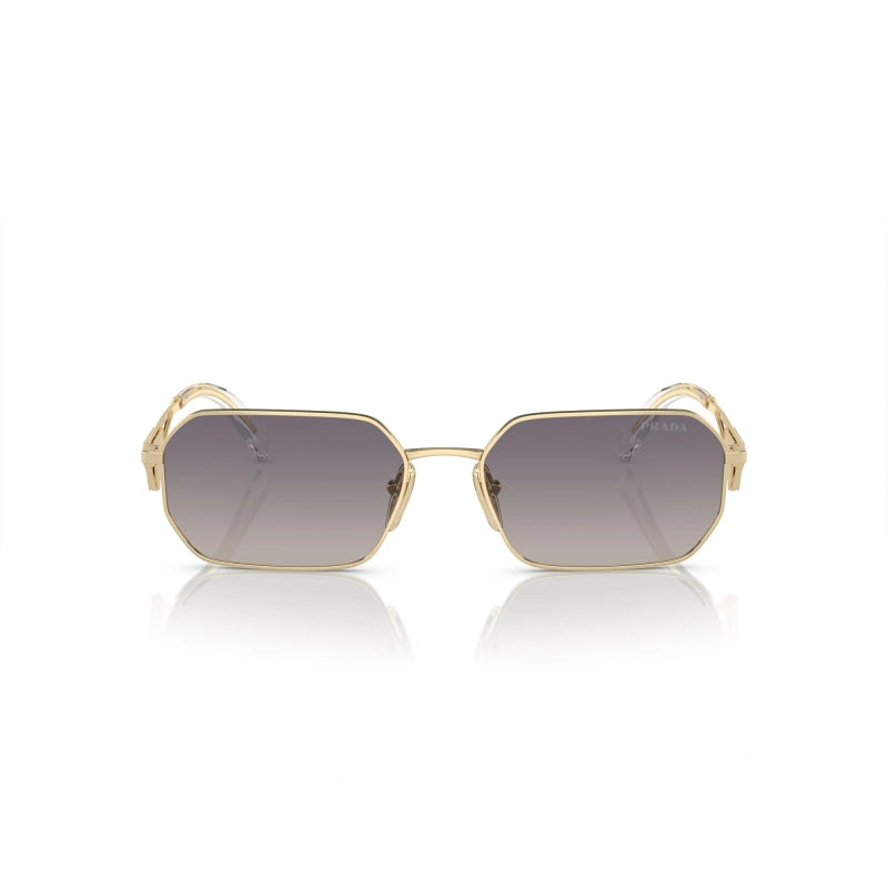 Rehaussez votre style avec les lunettes de soleil Prada PR A51S, un design de pointe qui redéfinit ce que signifie être à la mode. Les verres de couleur dégradée bleu miroir argent sont associés à une monture rectangulaire de couleur or, fabriquée à partir d'acétate de première qualité pour un look à la fois sophistiqué et audacieux.