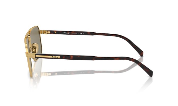 Découvrez les lunettes de soleil Prada PR A57S, où le style masculin rencontre l'élégance sophistiquée. Dotées d'une forme rectangulaire classique, ces lunettes sont fabriquées en acier avec une monture or, offrant une allure chic et contemporaine. Les verres marron clair en polyamide assurent une protection optimale tout en ajoutant une touche de modernité.