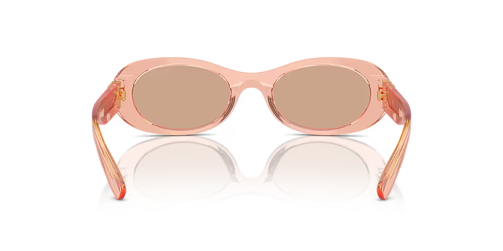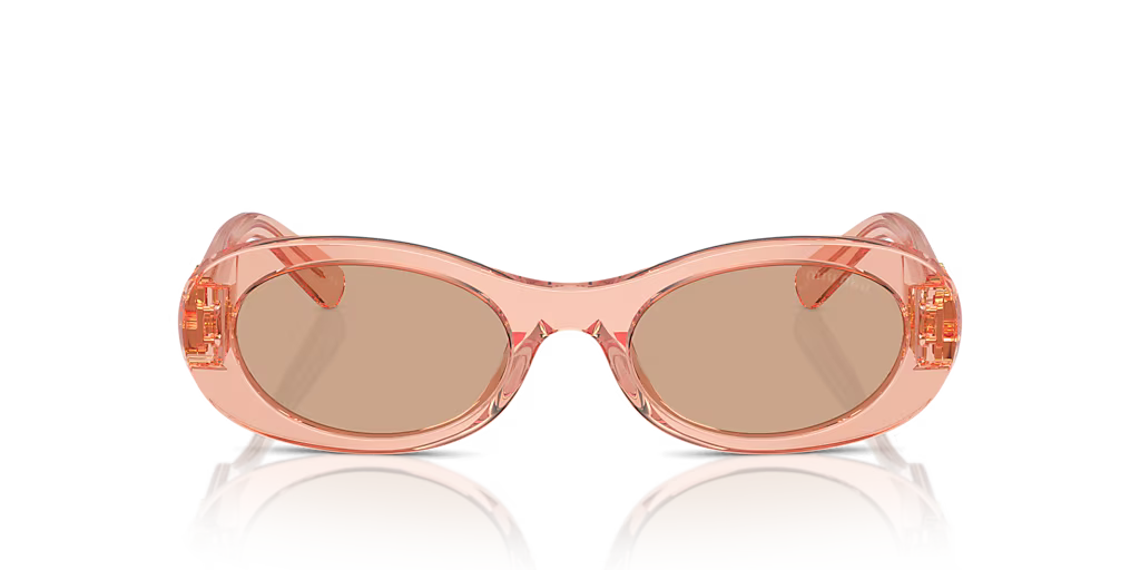 Les lunettes de soleil Miu Miu MU 06ZS incarnent une sophistication intemporelle avec une touche de modernité. Fabriquées en acétate avec une monture ovale transparente rose et des verres marron foncé, ces lunettes offrent un design élégant et raffiné. La forme ovale confère un look unique et captivant, tandis que les verres solides protègent efficacement contre les rayons UV.