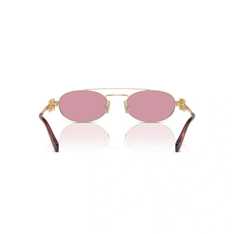 Les Miu Miu MU 56ZS sont une incarnation parfaite du style distinctif de la marque. Avec une monture en métal doré et des verres violet clair marron, ces lunettes de soleil combinent tradition et modernité. La forme irrégulière ajoute une touche innovante à ce modèle classique, idéal pour ceux qui souhaitent allier élégance et originalité.