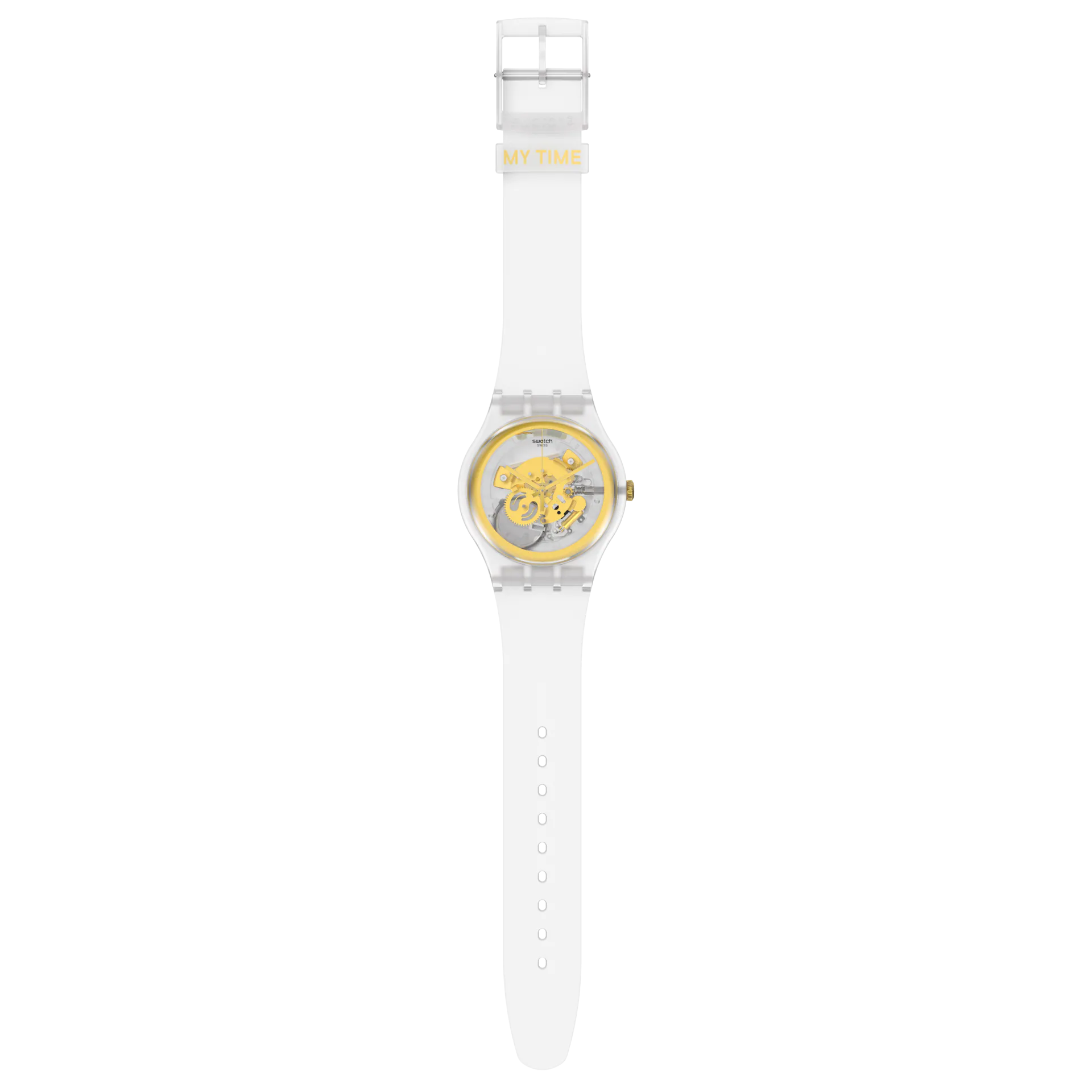 La montre MY TIME est une véritable célébration des trois décennies du Swatch Club et de l'histoire de la marque. Avec son design transparent et doré, elle rend hommage à la mythique Golden Jelly et reflète parfaitement l'ADN de Swatch. Cette montre incarne les valeurs de transparence, de légèreté et de mouvement chères à la marque. En intégrant la technologie SwatchPAY!, elle allie tradition et innovation pour offrir une expérience moderne à ses utilisateurs. Que vous soyez membre du Swatch Club depuis longtemps ou que vous découvriez la marque pour la première fois, la montre MY TIME est un véritable symbole de l'histoire et de l'évolution de Swatch.