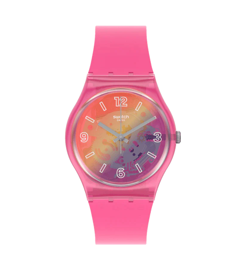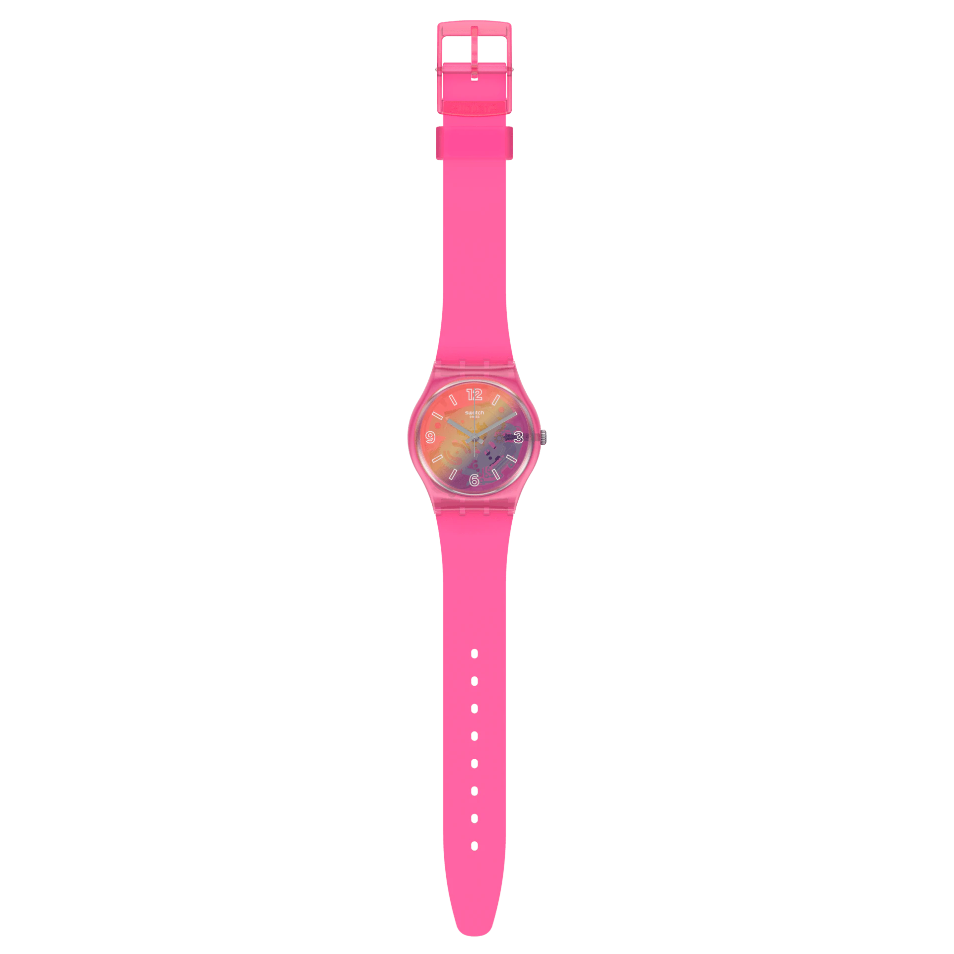 - Couleur : La montre est principalement de couleur rose, tant pour le boîtier que pour le bracelet, créant un look audacieux et énergique.