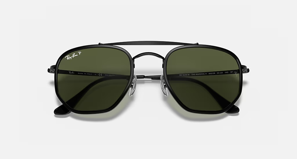 Les lunettes de soleil Ray-Ban Marshal II RB3648M allient un design audacieux à une élégance intemporelle. Leur monture en métal poli noir, combinée à la forme hexagonale irrégulière, confère un look sophistiqué et moderne, parfait pour ceux qui veulent se démarquer. Les branches et le double pont plats ajoutent une touche distinctive à cette monture emblématique.