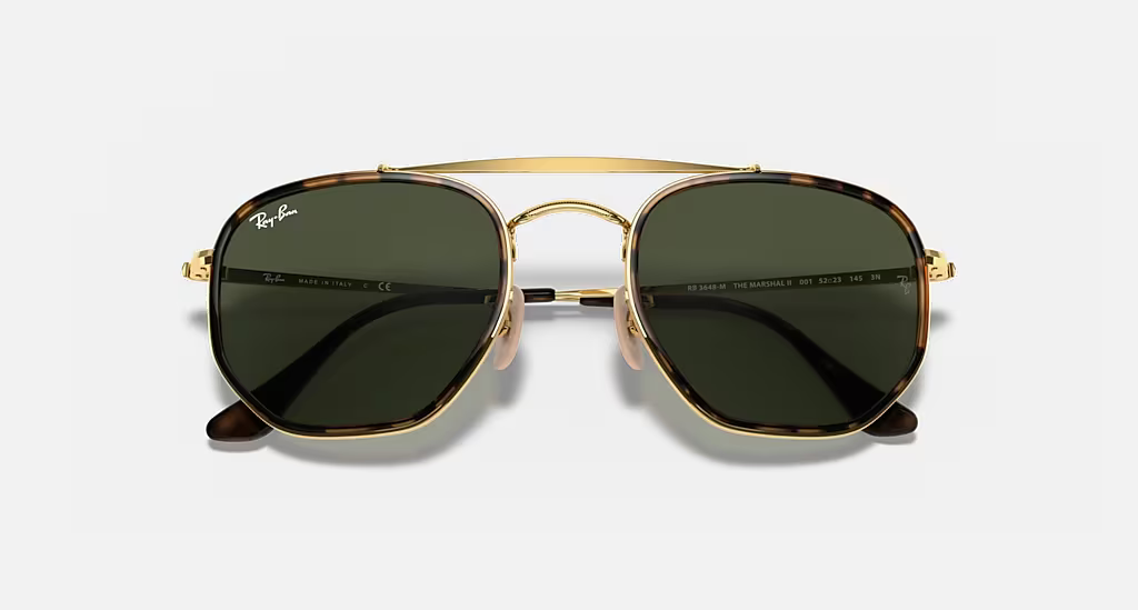 Les lunettes de soleil Ray-Ban Marshal II RB3648M sont une incarnation parfaite de l'élégance moderne, combinant un design audacieux et une fonctionnalité inégalée. La monture en métal poli or, avec sa forme hexagonale irrégulière, offre une touche de sophistication tout en maintenant un style distinctif. Les branches et le double pont plats ajoutent une dimension unique à cette monture emblématique de la famille General.