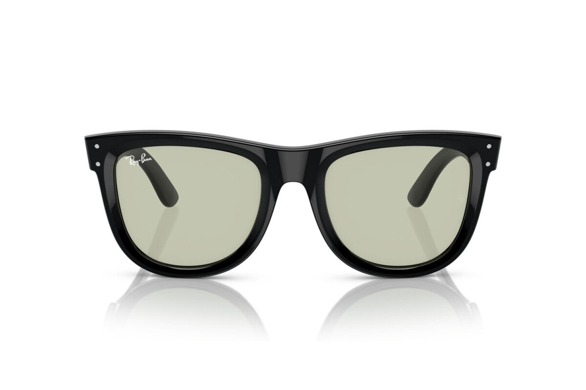 Les lunettes de soleil Ray-Ban RBR 0502S incarnent l'élégance et l'audace avec leur design carré distinctif. La monture en Acétate de couleur noir transparent apporte une touche de chaleur et de sophistication, tandis que les verres en polyamide bio en vert clair offrent une protection solaire optimale.