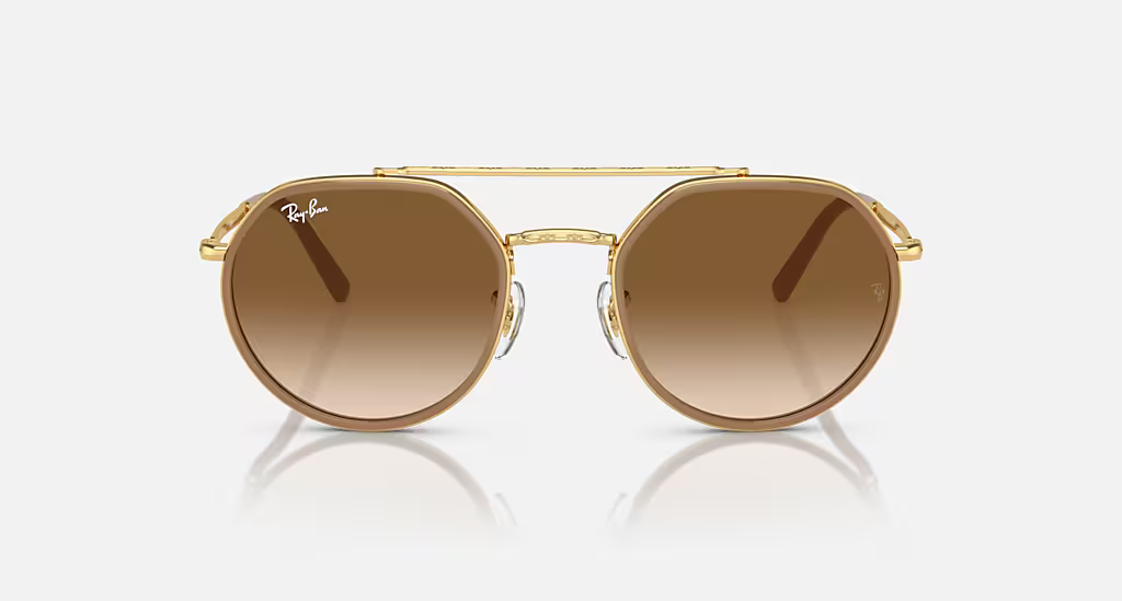 Les lunettes de soleil Ray-Ban RB3765 se distinguent par leur design irrégulier et élégant, combinant une monture en métal poli or avec des verres marron clair dégradés. Ce modèle sophistiqué est parfait pour ceux qui recherchent un accessoire à la fois stylé et fonctionnel, capable d'ajouter une touche de luxe à n'importe quelle tenue.