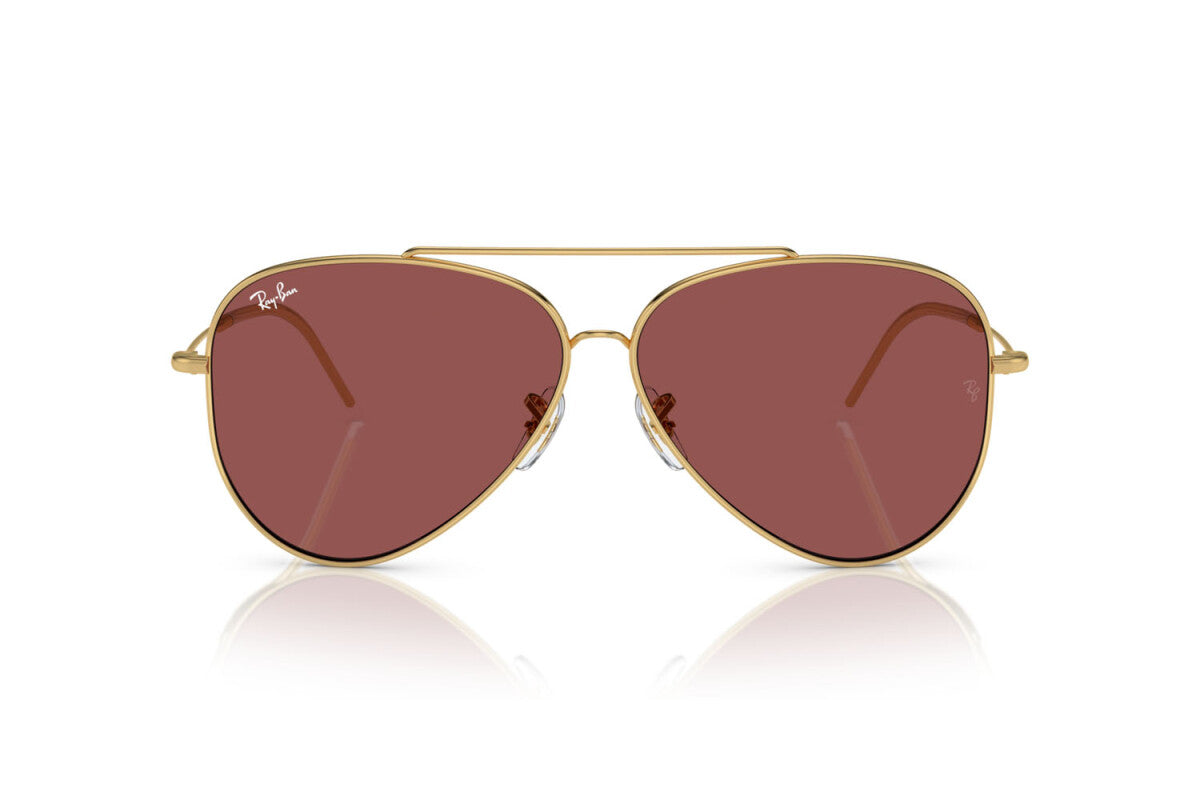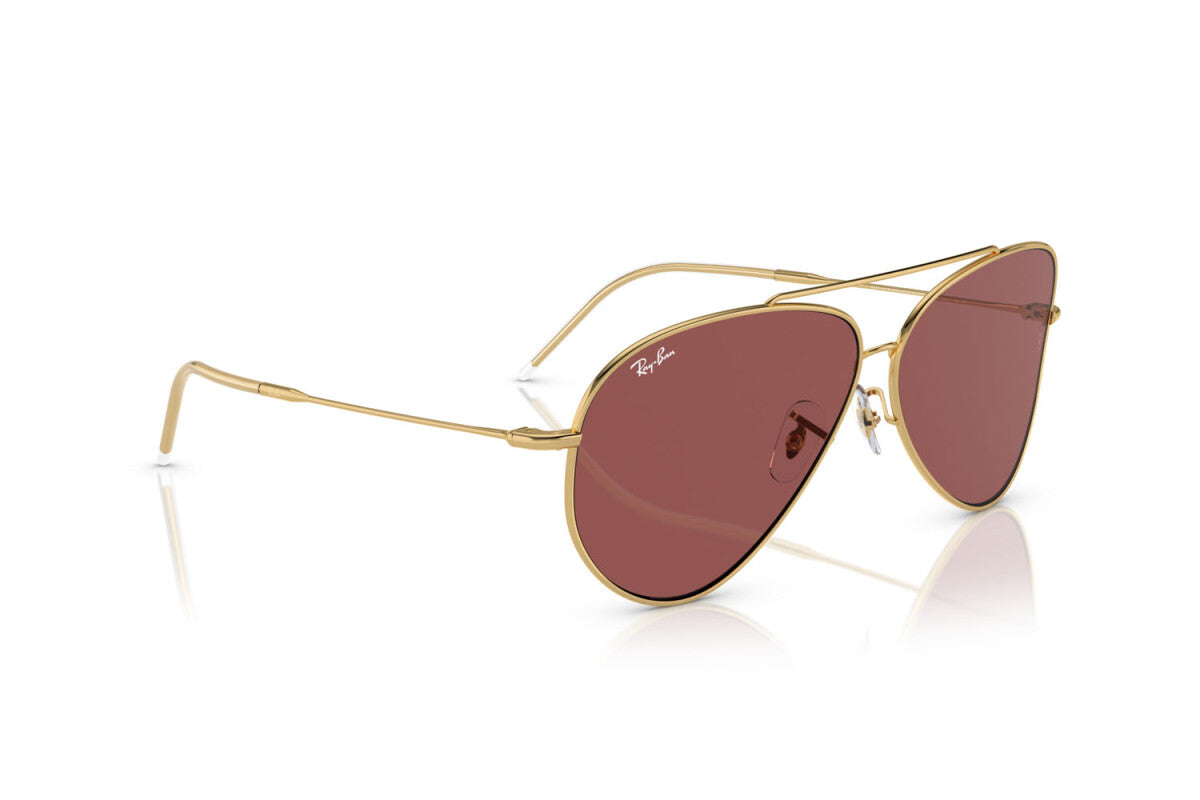 Les lunettes de soleil Ray-Ban RBR 0101S incarnent l'élégance et l'audace avec leur design aviator reverse distinctif. La monture en Métal de couleur or apporte une touche de chaleur et de sophistication, tandis que les verres en polyamide bio en violet offrent une protection solaire optimale.