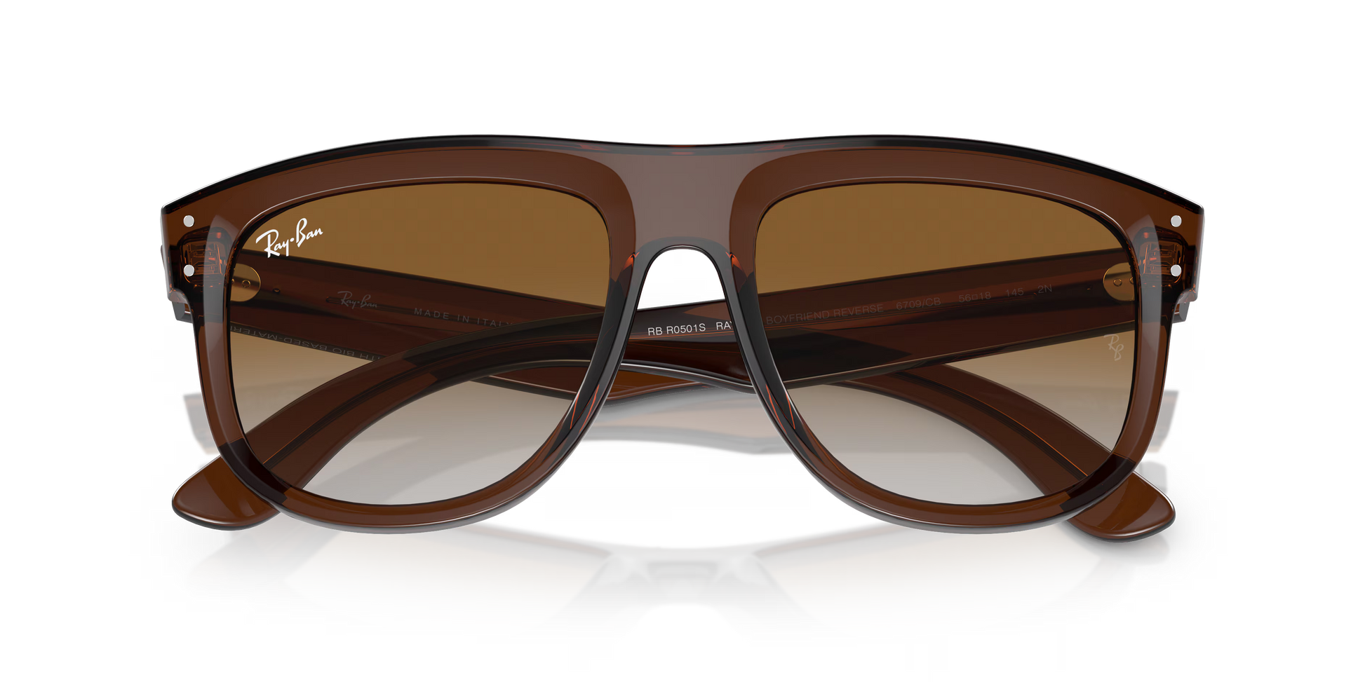 Découvrez les lunettes Ray-Ban Boyfriend Reverse, une version moderne et audacieuse du modèle iconique Boyfriend. Ces lunettes carrées se distinguent par leur monture en matériau injecté, de couleur transparente marron, associée à des verres en polyamide bio de teinte brune avec une technologie gradient. Cette combinaison crée un look à la fois chic et sophistiqué, idéal pour toutes les occasions.
