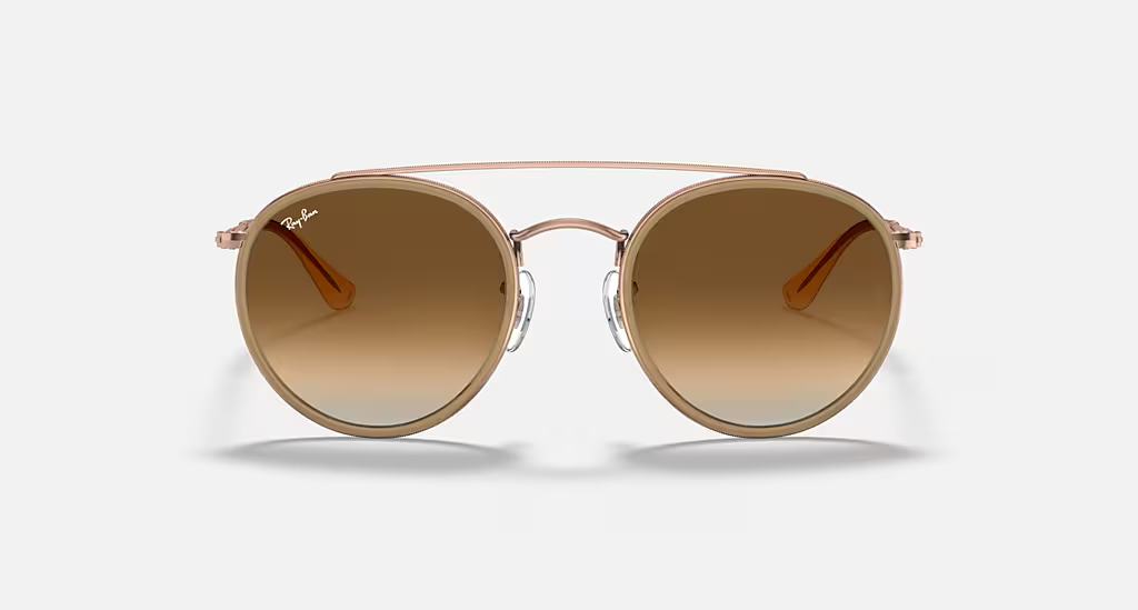 Le modèle Ray-Ban Round Double Bridge RB3647N est une version moderne et élégante de la classique monture ronde. Ce modèle, parmi les plus vendus, se distingue par sa monture en métal poli cuivre, enveloppée d'un fin cercle en plastique transparent, ajoutant une touche unique et contemporaine à ce design emblématique.