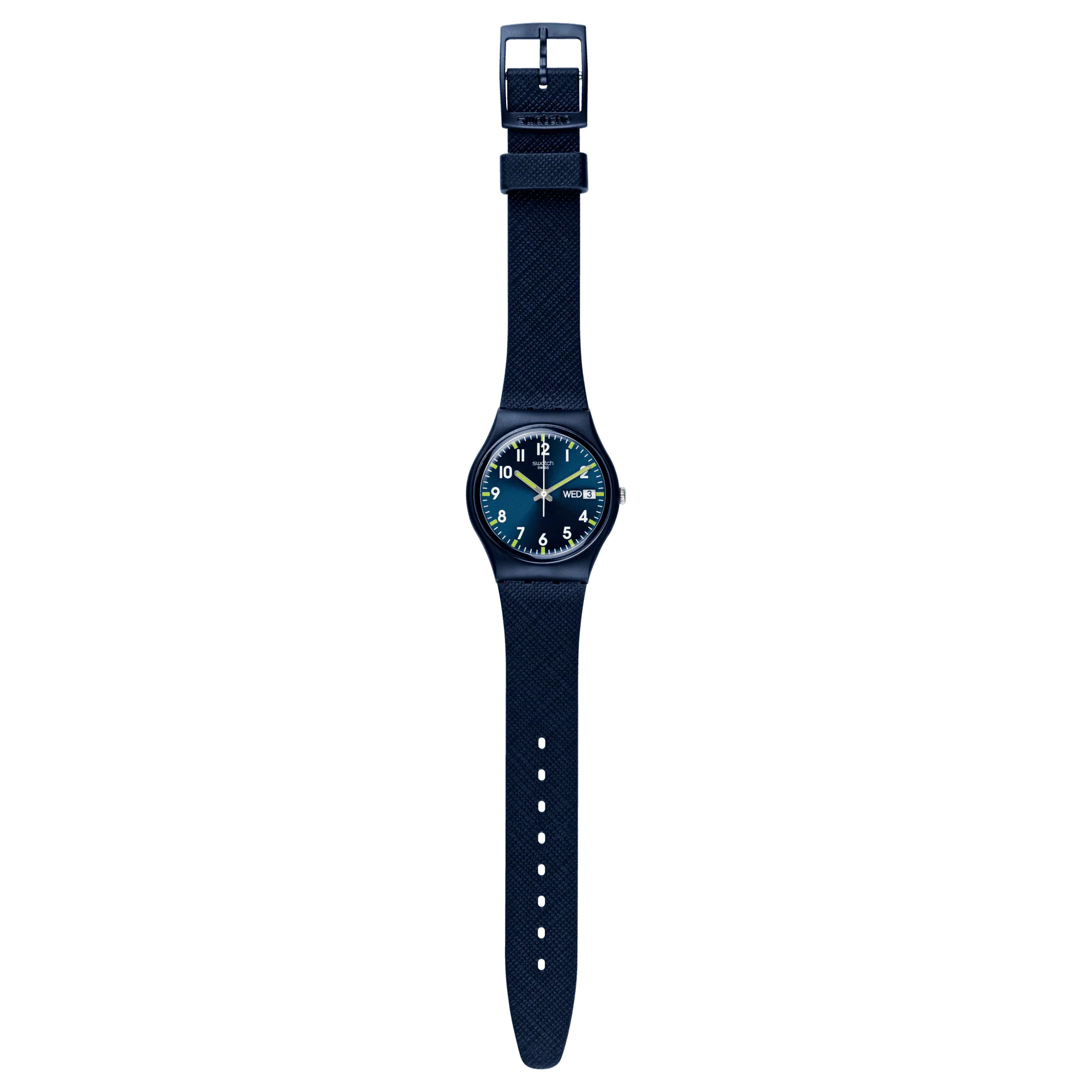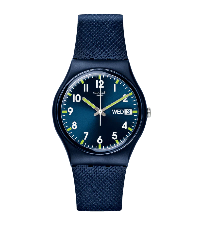 Le chic n'est jamais à court de style. La montre SIR BLUE (GN718) mélange détails intemporels et touche moderne. Cette montre élégante arbore un cadran bleu brossé-soleil avec des indexes verts phosphorescents et la date, pour un chronométrage facile. Un bracelet bleu profond gaufré ajoute une superbe sensation texturée.