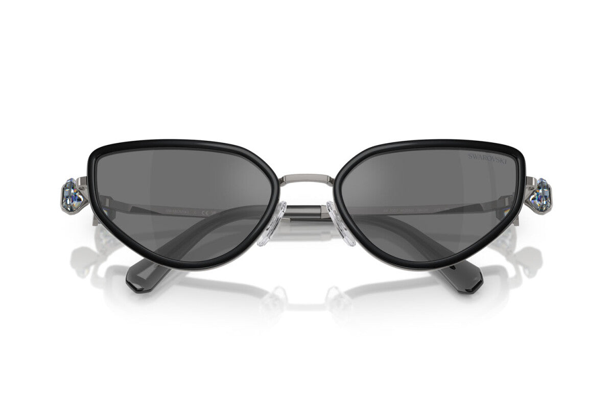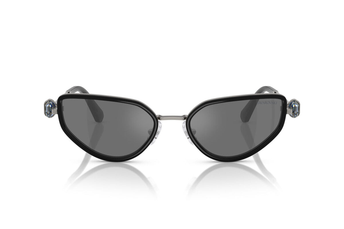 Les lunettes de soleil Swarovski SK 7027 incarnent l'élégance et l'audace avec leur design irrégulier distinctif. La monture en métal de couleur noir apporte une touche de chaleur et de sophistication, tandis que les verres en polyamide bio en noir gris offrent une protection solaire optimale.