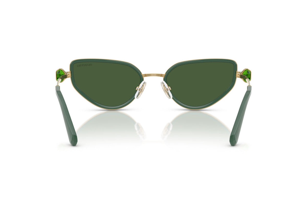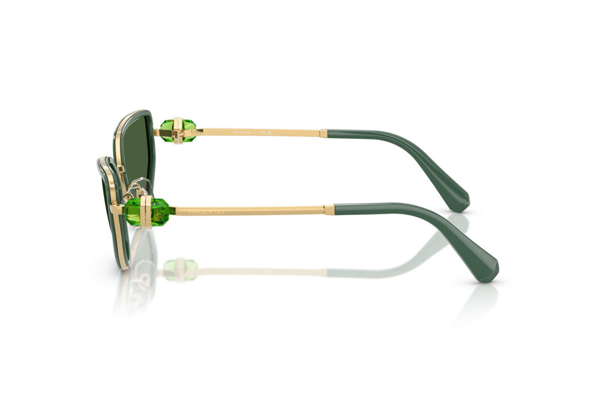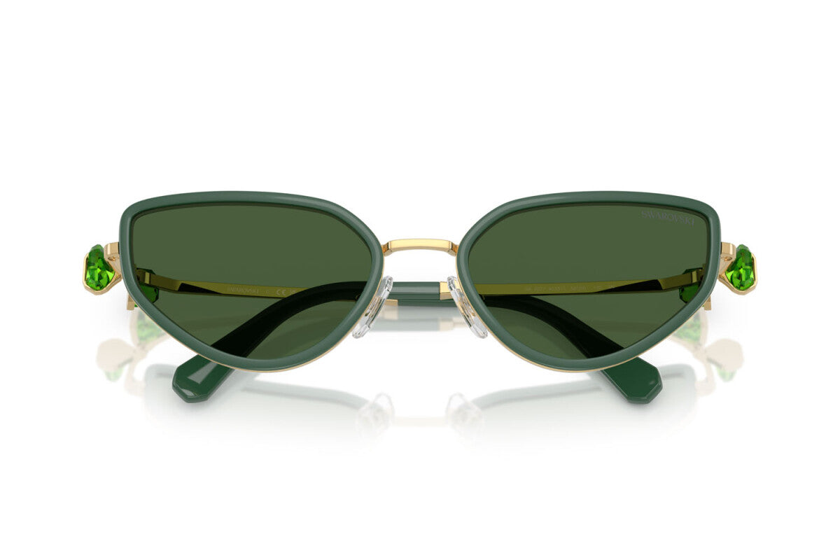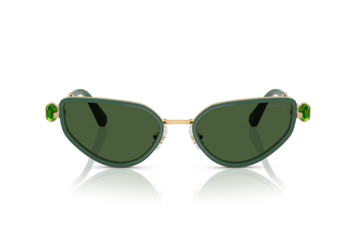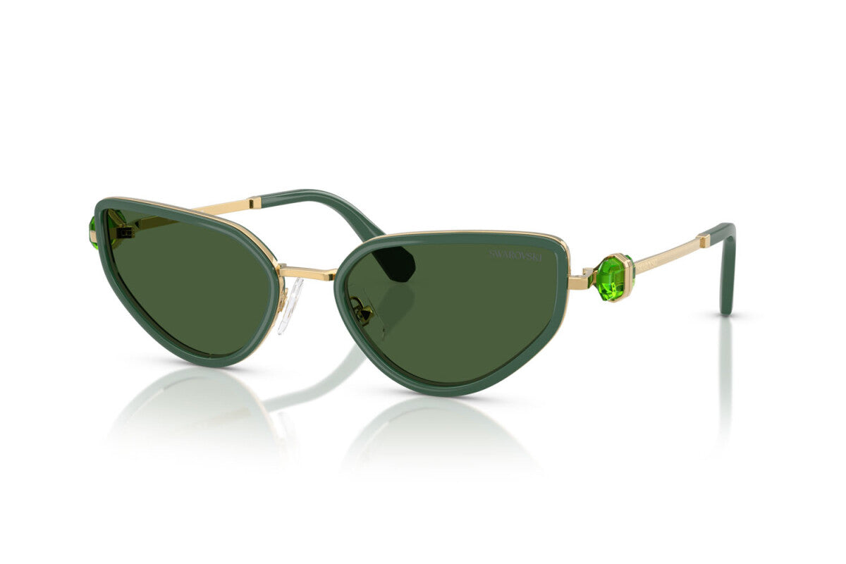 Les lunettes de soleil Swarovski SK 7027 incarnent l'élégance et l'audace avec leur design irrégulier distinctif. La monture en métal de couleur or et vert apporte une touche de chaleur et de sophistication, tandis que les verres en polyamide bio en vert foncé offrent une protection solaire optimale.