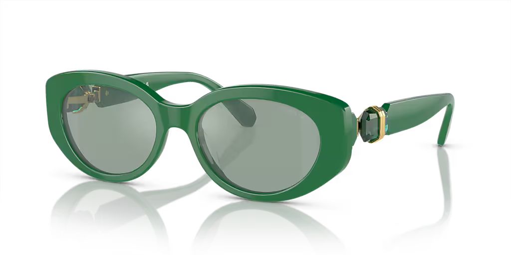Les lunettes de soleil Swarovski SK6002 se démarquent par leur design audacieux orné de cristaux dans des couleurs contrastantes ou assorties avec le cerclage en acétate vert. Leurs verres effet miroir argenté à l'intérieur créent un look raffiné et contemporain, apportant une touche de glamour aux styles classiques. Ces lunettes sont idéales pour ceux qui recherchent une combinaison de sophistication et de luxe dans leur accessoire quotidien.