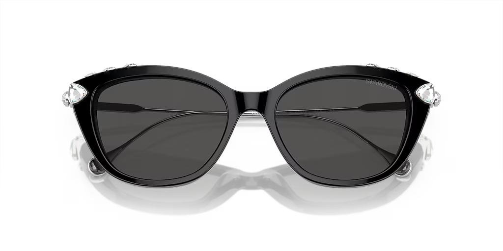 Les Swarovski SK6010 offrent une interprétation élégante et audacieuse de la forme œil de chat, ornée de cristaux de tailles variées, avec des options de couleurs lumineuses comme le Golden Shadow, l'Emerald, et l'Aquamarine. Cette monture en acétate noir est rehaussée par des verres gris foncé offrant une protection optimale. Conçue pour ceux qui recherchent un style à la fois raffiné et ludique, elle combine parfaitement le luxe emblématique de Swarovski avec une touche contemporaine.