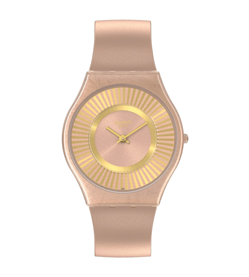 La montre ultrafine "Tawny Radiance" apporte une touche de raffinement à toute tenue. Ses tonalités or rose et son effet scintillant sont le fruit d'un cadran Reflective Chromatics couleur or-rose et d'un boîtier biosourcé brun. Grâce au procédé Anodamazing, le bracelet, le passant et la boucle arborent un effet irisé captivant.