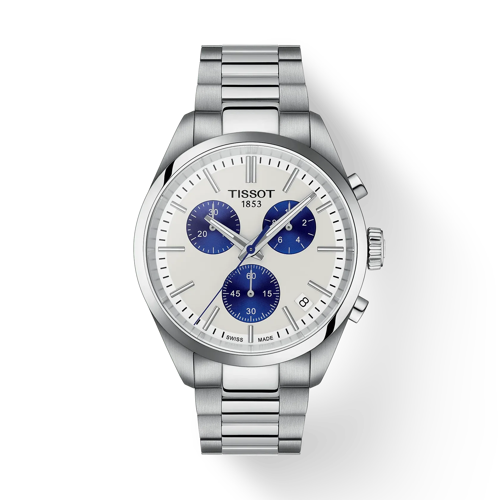 La collection Tissot PR100 propose des chronographes à quartz classiques dans différentes couleurs. Ces garde-temps à la fois sportifs et élégants sont dotés d'une rangée centrale polie sur le bracelet pour un aspect plus brillant, d'un disque blanc dans le guichet de la date et d'une trotteuse standard. Le mouvement à quartz G10.212 chrono offre précision et robustesse, complétées par une étanchéité jusqu'à 10 bars (100 mètres/330 pieds), et la visibilité dans des conditions de faible luminosité est garantie par le revêtement Super-LumiNova® sur les aiguilles en forme d'aiguille.