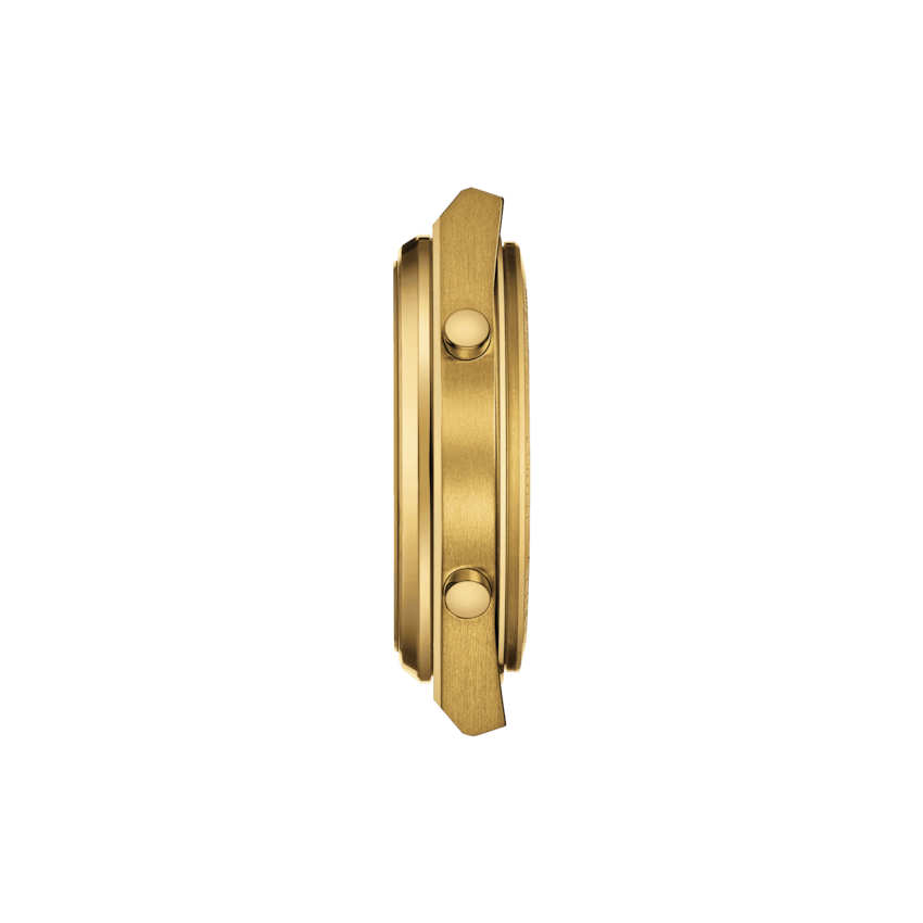 Le bracelet en acier inoxydable de couleur dorée, référencé T605047387, complète l'esthétique de cette montre. Dotée d'un bracelet interchangeable à démontage rapide et d'une boucle papillon avec des boutons-poussoirs, la Tissot PRX Digital incarne l'alliance parfaite entre fonctionnalités de pointe et style sophistiqué. Retrouvez-la dès maintenant chez Le Comptoir des Montres, votre destination pour l'excellence horlogère.