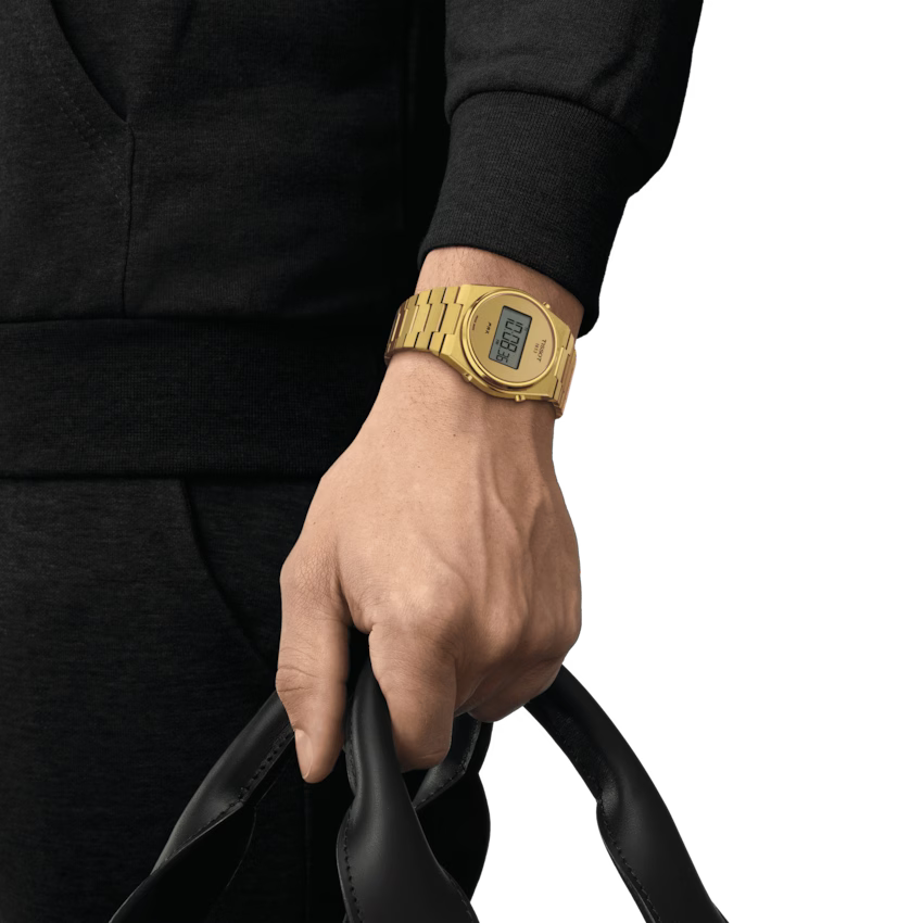 La Tissot PRX Digital, fusion harmonieuse du design emblématique de 1978 de la PRX et du quartz numérique Tissot (Calibre 4012), illustre brillamment un hybride entre époques passées et influence numérique. Mariant parfaitement l'esthétique rétro à une touche contemporaine, elle est le garde-temps des pionniers d'aujourd'hui. La PRX Digital, disponible en options de 35 mm et 40 mm et dans une variété de couleurs, convient à tous les poignets, tandis que sa multitude de fonctionnalités - double fuseau horaire, jour-date, chronographe, et bien plus encore - répond à tous les besoins. Protégée dans un boîtier résistant à l'eau jusqu'à 100 mètres et agrémentée d'un bracelet à finition satinée et d'une boucle déployante à triple lame, ces garde-temps sont conçus pour allier endurance et confort. La collection Tissot PRX Digital symbolise un voyage à travers le temps, un hommage au passé et un toast au futur.