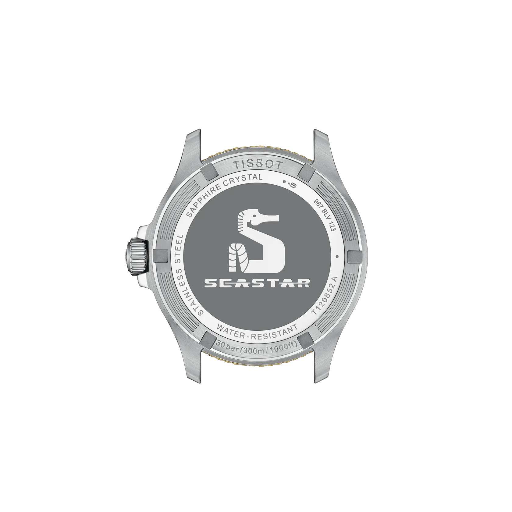 La Tissot Seastar 1000 Quartz GMT possède tous les éléments d’une montre de sport adaptée aux milieux aquatiques. Elle est dotée d’une étanchéité jusqu'à une pression de 30 bars (300m/1000 pieds) garantie par la couronne et le fond de boîte vissés, qui offrent une protection supplémentaire contre les chocs. Son mouvement à quartz de fabrication suisse est équipé d’une fonctionnalité GMT qui permet la lecture d’un second fuseau horaire. Le Superluminova® présent sur les éléments du cadran offre la lisibilité dans l'obscurité. La Tissot Seastar 1000 Quartz GMT est un as aquatique qui a vraiment tout pour plaire.