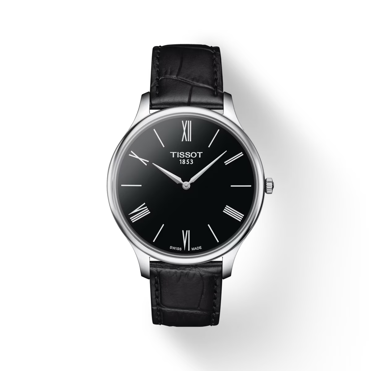 Découvrez la montre Tissot Tradition 5.5, la plus fine de la collection Tissot, avec une incroyable boîte d'une épaisseur de moins de 5,5 mm. Cette montre incarne une esthétique intemporelle grâce à l'intégration de détails classiques, de subtils accents rétro et d'une boîte délicatement incurvée d'un diamètre de 39 mm. La Tissot Tradition est synonyme de précision, de fiabilité et de durabilité.
