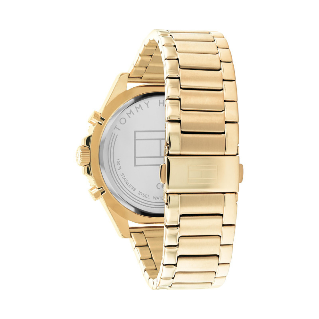La montre Tommy Hilfiger TH1791919 est dotée d'un boîtier en acier plaqué or fin de couleur dorée. Avec un diamètre de 46 mm, cette montre a une présence audacieuse et élégante. Le cadran est de couleur noire, ajoutant une touche de sophistication à son design.