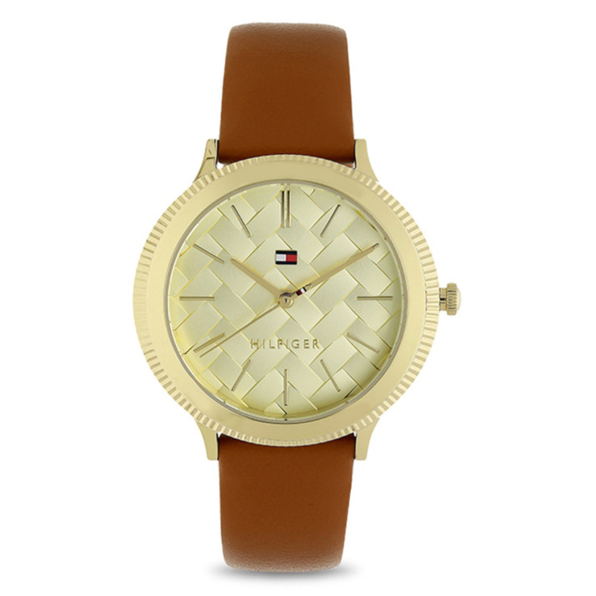 Définissez vos paramètres de mode élevés avec cette montre analogique pour femmes de Tommy Hilfiger. Logé dans un boîtier de 36 mm, le cadran rond doré présente trois aiguilles simples, des index en bâton toutes les cinq minutes et une couronne pour régler l'heure. Le bracelet en cuir véritable arbore une teinte marron qui rehausse l'apparence de la montre. De plus, il est équipé d'une boucle ardillon qui assure un ajustement sécurisé au poignet.