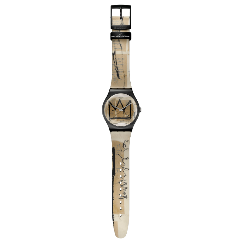 Célébrez l'art contemporain avec la montre 'Untitled by Jean-Michel Basquiat', une pièce qui rend hommage à l'un des plus grands artistes de notre époque. Disponible chez Le Comptoir des Montres, cette montre SUOZ355, dotée d'un mouvement Quartz, reproduit l'œuvre 'Untitled' de Basquiat. La couronne emblématique de l'artiste est au centre du cadran beige, mise en valeur par un boîtier noir.