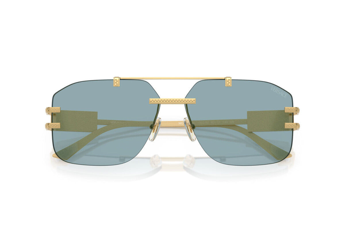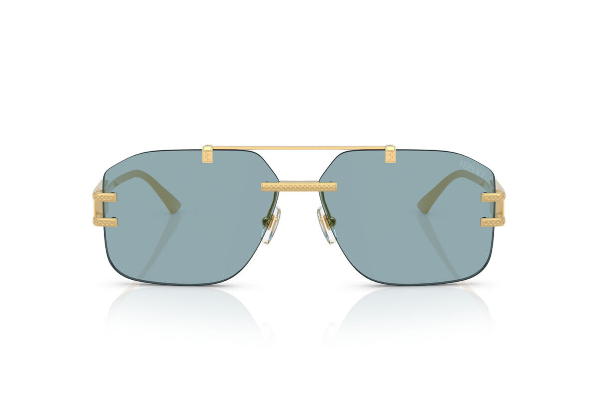 Les lunettes de soleil Versace VE 2275 incarnent l'élégance et l'audace avec leur design irrégulière distinctif. La monture en métal de couleur or apporte une touche de chaleur et de sophistication, tandis que les verres en polyamide bio en bleu offrent une protection solaire optimale.