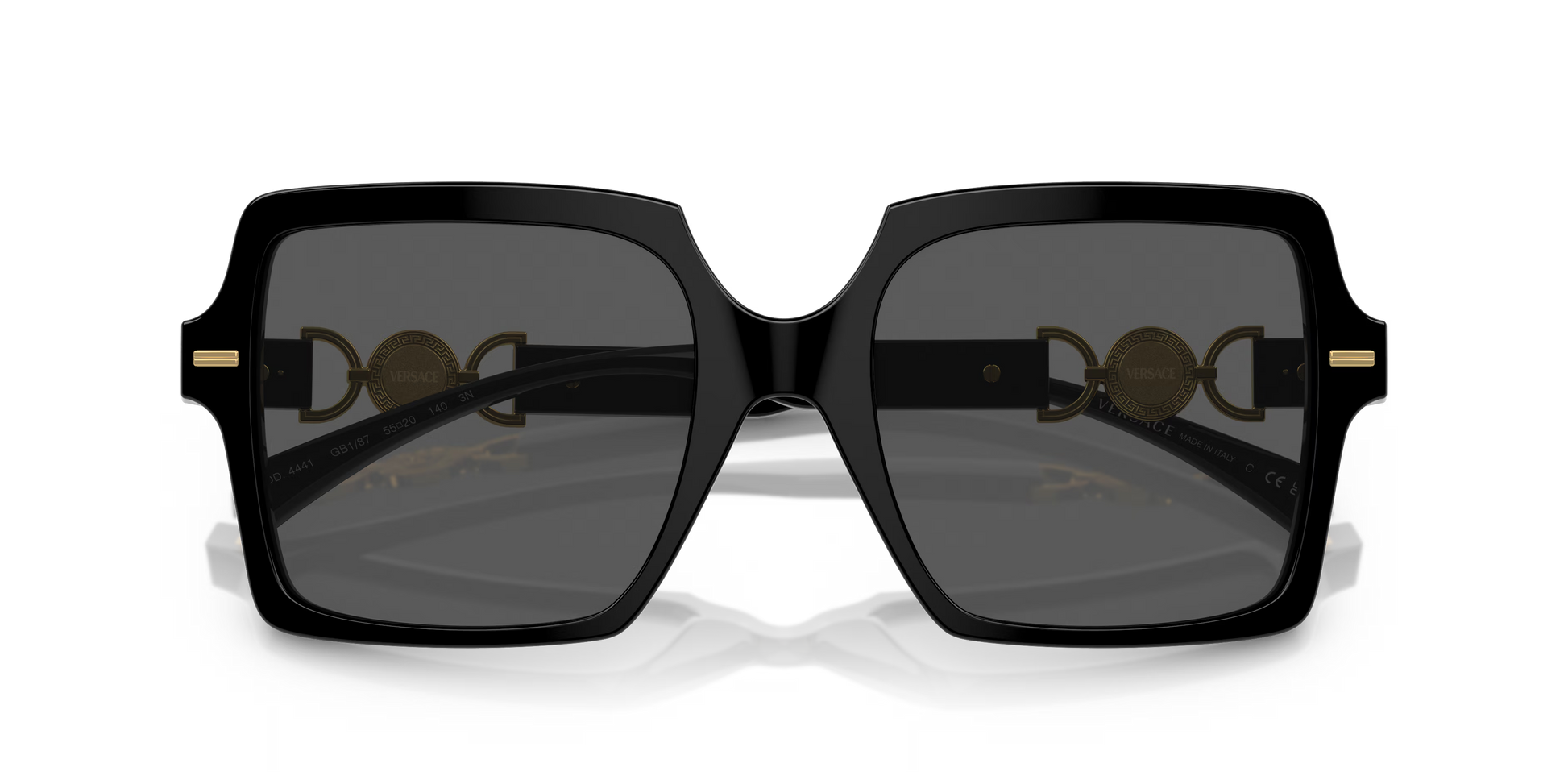 Découvrez le style emblématique de Versace avec les lunettes de soleil VE4441, une interprétation moderne de l'héritage de la marque. Ces lunettes carrées en acétate noir avec une finition brillante incarnent l'élégance intemporelle tout en dévoilant un côté audacieux. Les verres en polyamide gris foncé, teintés unis, offrent une protection UV optimale, garantissant confort et sécurité.