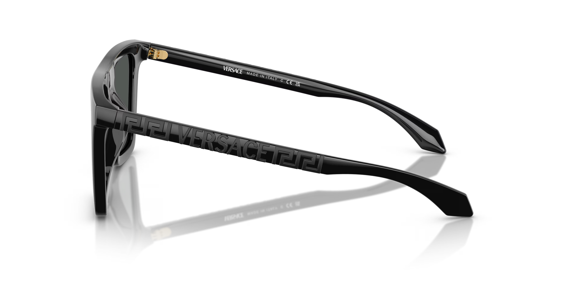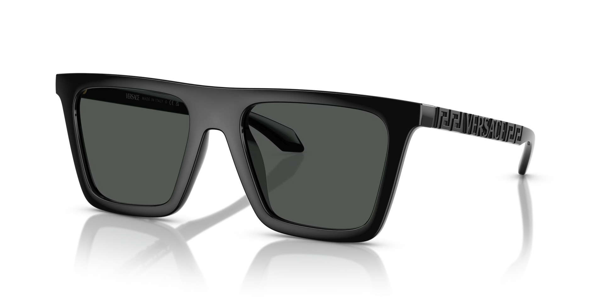Découvrez les nouvelles teintes de la collection Versace, où les éléments iconiques se marient au style contemporain. La monture rectangulaire en nylon noir brillant, associée à des verres gris foncé en polyamide bio, crée un look saisissant qui respire la sophistication et l'élégance.