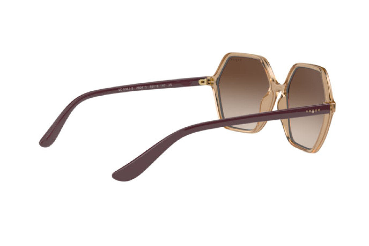 Les lunettes de soleil Vogue VO5361S incarnent l'élégance et l'audace avec leur design irrégulier distinctif. La monture en acétae de couleur caramel apporte une touche de chaleur et de sophistication, tandis que les verres en polyamide bio en marron offrent une protection solaire optimale.