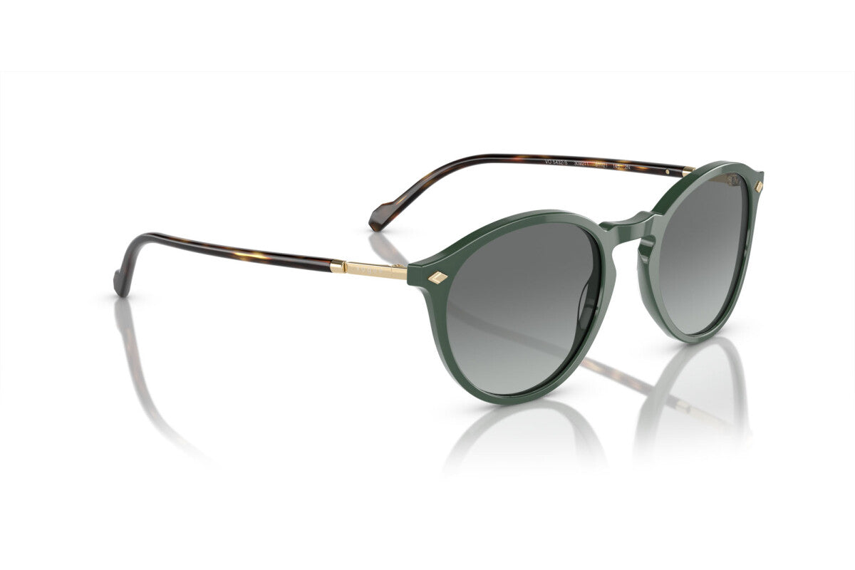 Les lunettes de soleil Vogue VO5432S incarnent l'élégance et l'audace avec leur design phantos distinctif. La monture en acétate de couleur vert apporte une touche de chaleur et de sophistication, tandis que les verres en polyamide bio en dégradé de gris offrent une protection solaire optimale.