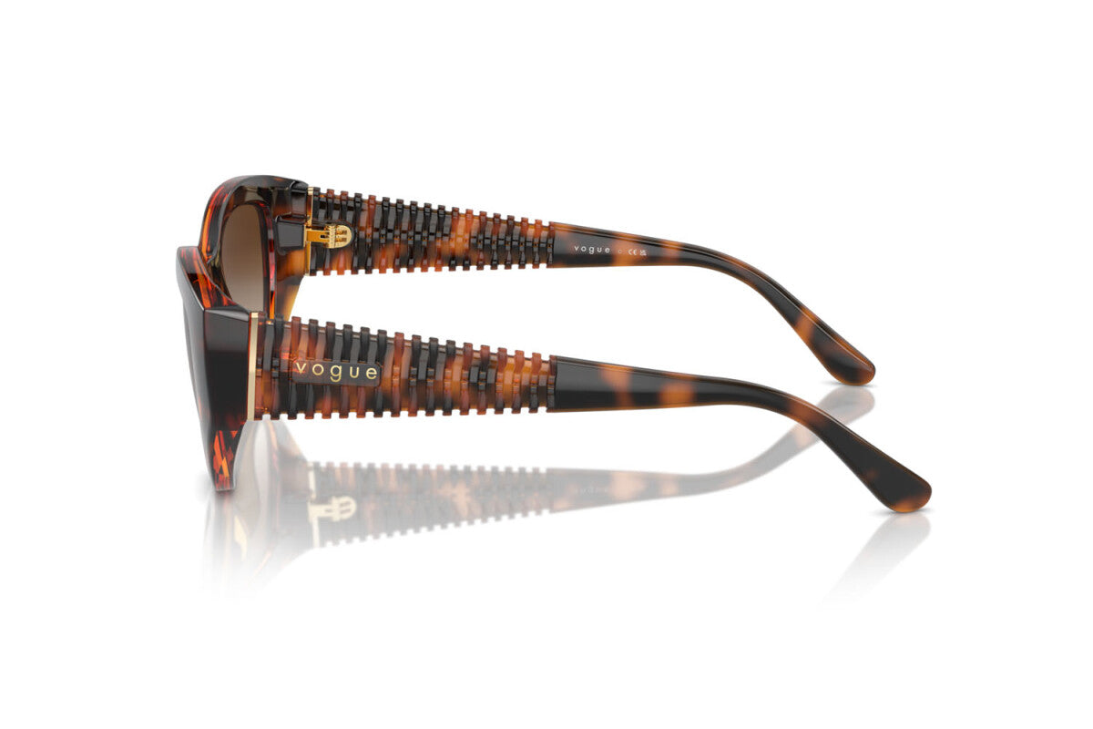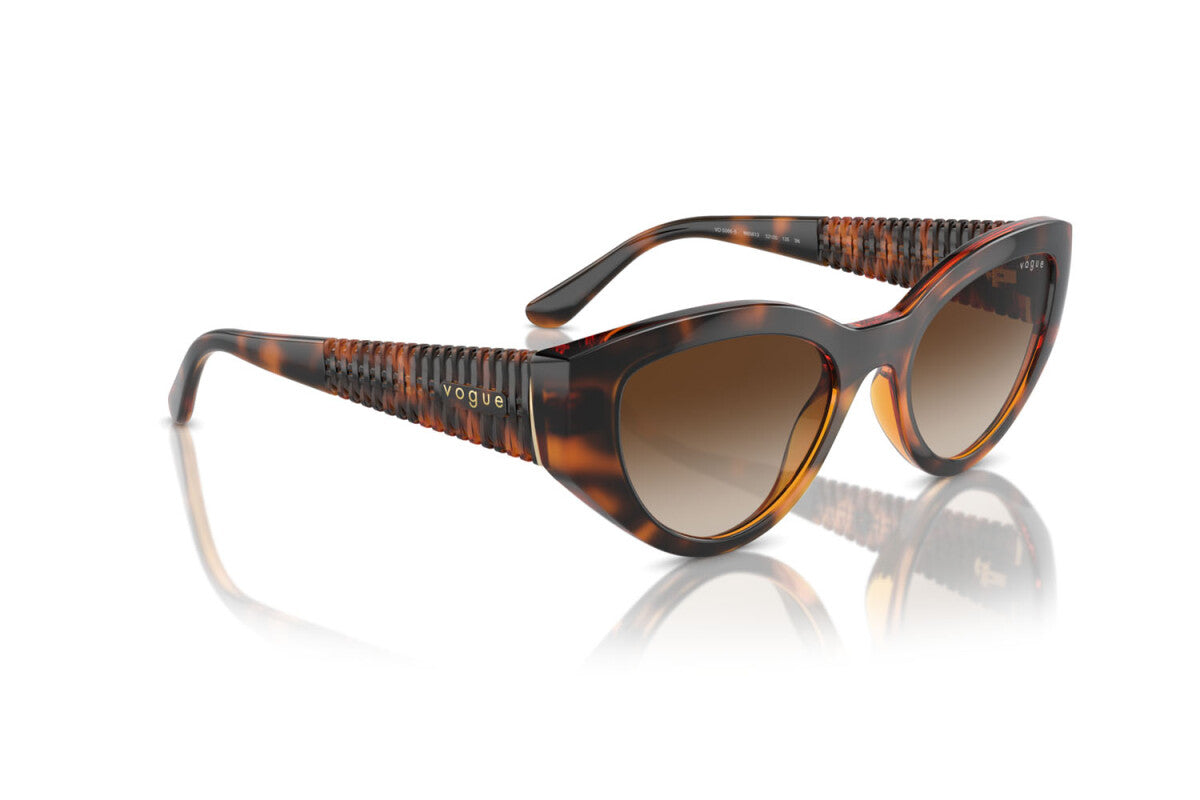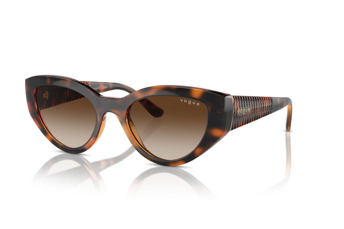 Les lunettes de soleil Vogue VO5566S incarnent l'élégance et l'audace avec leur design cat eye distinctif. La monture en acétate de couleur Havane apporte une touche de chaleur et de sophistication, tandis que les verres en polyamide bio en marron offrent une protection solaire optimale.