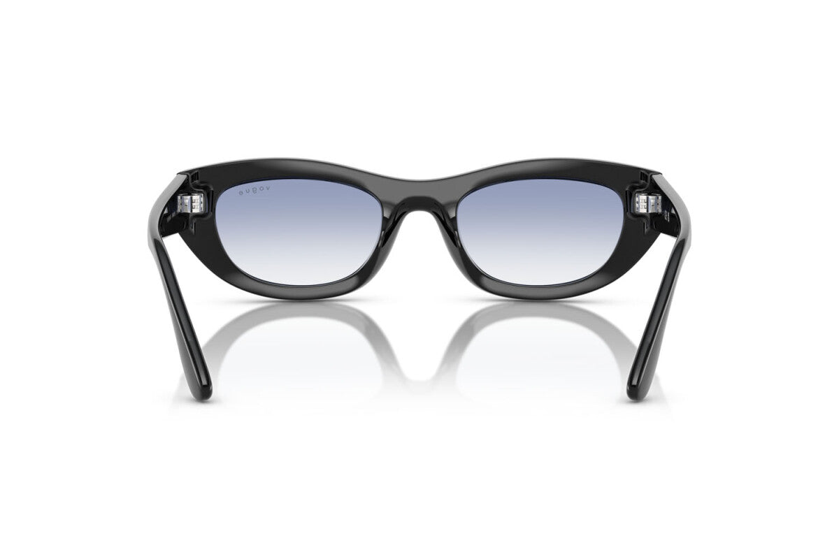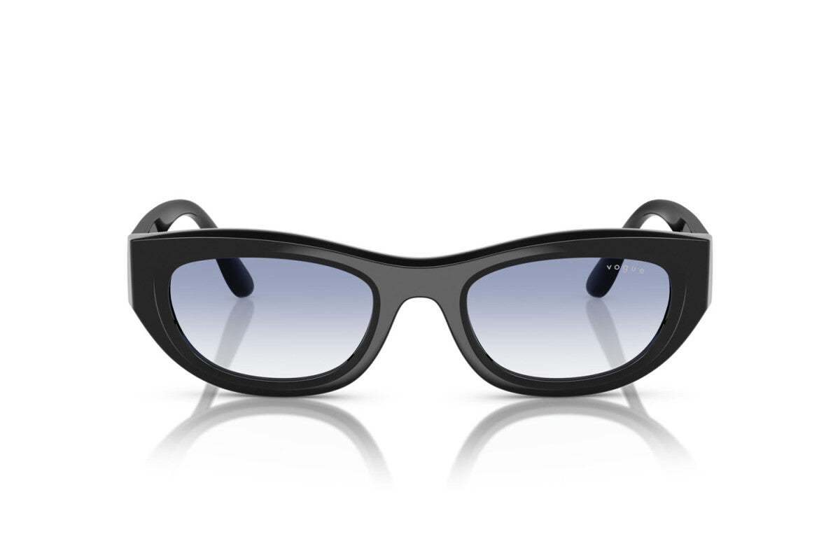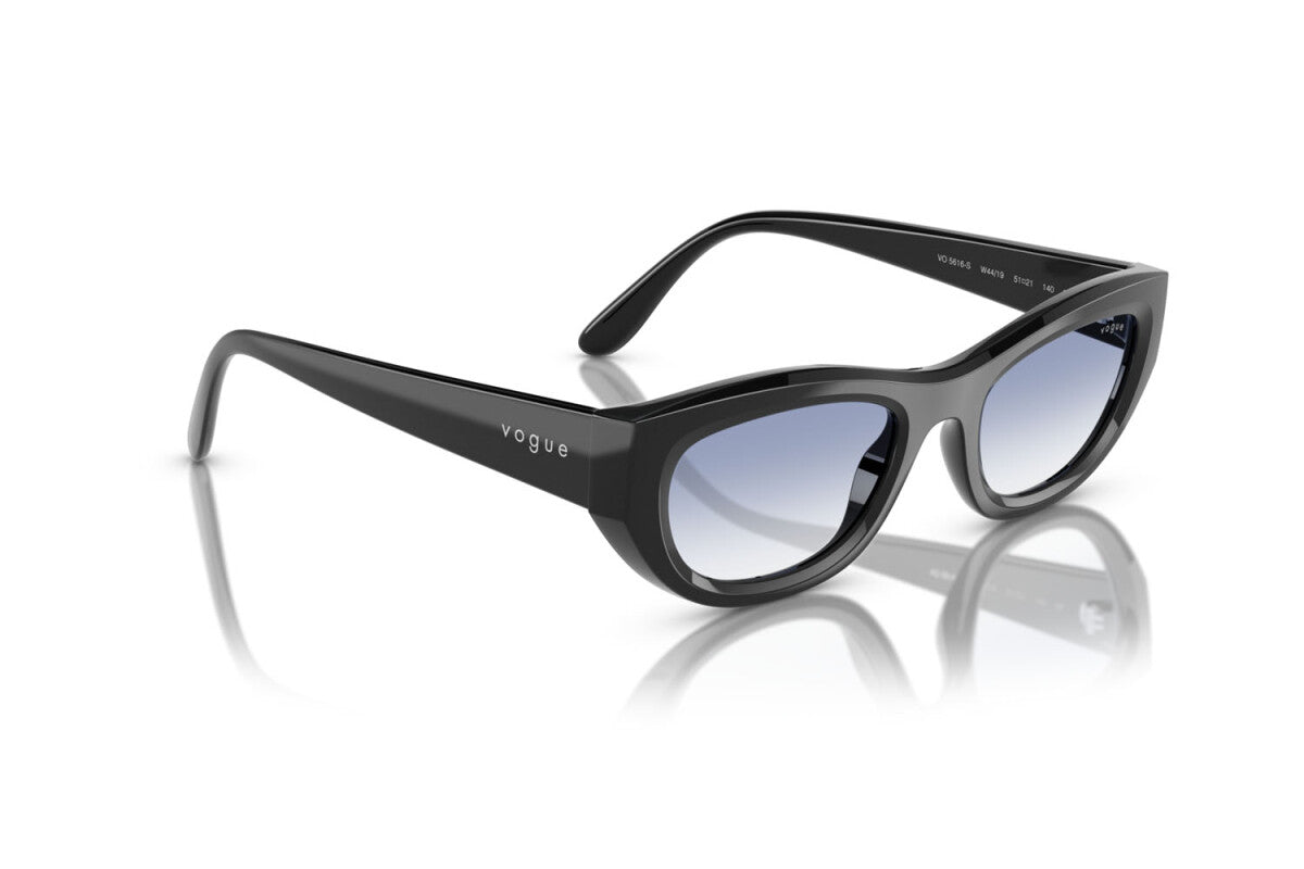 Les lunettes de soleil Vogue VO5616S incarnent l'élégance et l'audace avec leur design cat eye distinctif. La monture en acétate de couleur noir apporte une touche de chaleur et de sophistication, tandis que les verres en polyamide bio en bleu clair offrent une protection solaire optimale.
