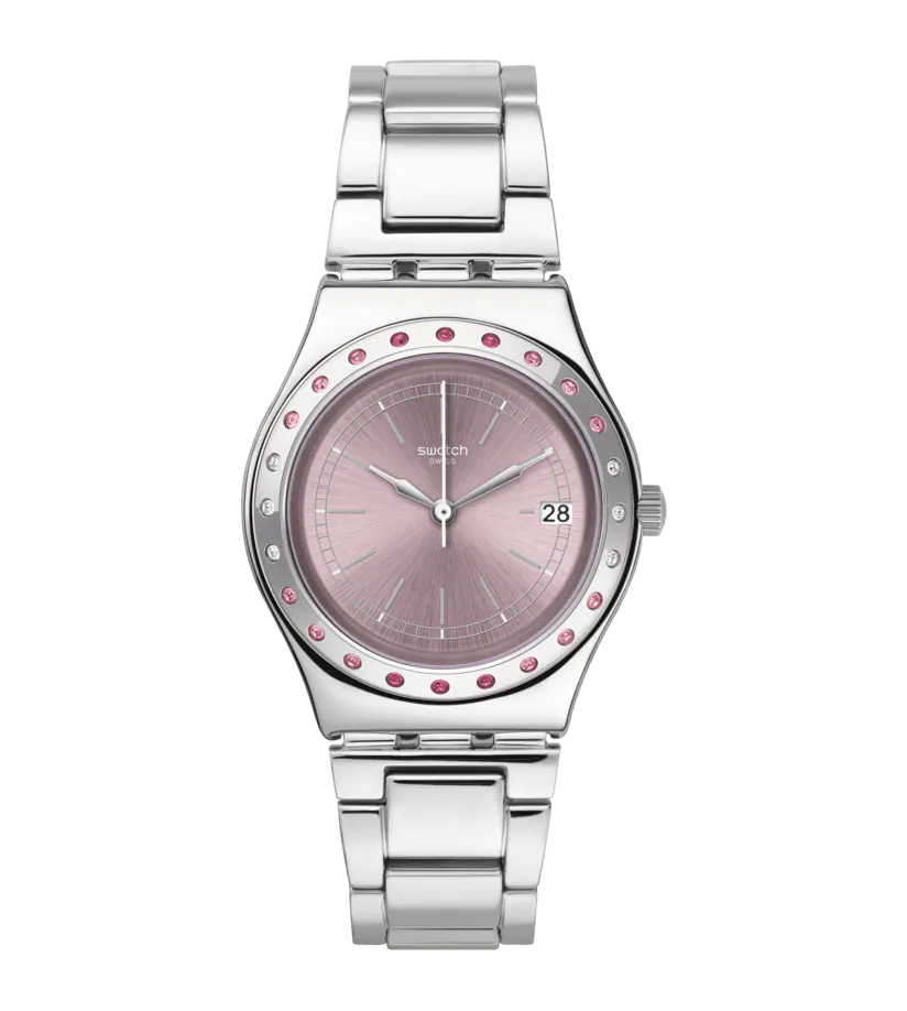 L'amour est dans l'air avec la montre PINKAROUND (YLS455G). Son cadran rose blush brossé soleil avec des imprimés blancs et gris est doté d'une fenêtre de date à 3 heures, vous permettant de ne jamais manquer un rendez-vous. Nichée dans un boîtier en acier inoxydable poli, une lunette assortie ornée de cristaux multicolores fait scintiller votre style. Un bracelet ajustable en acier inoxydable poli couleur argent vient parfaire ce modèle. Adorable, n'est-ce pas ?